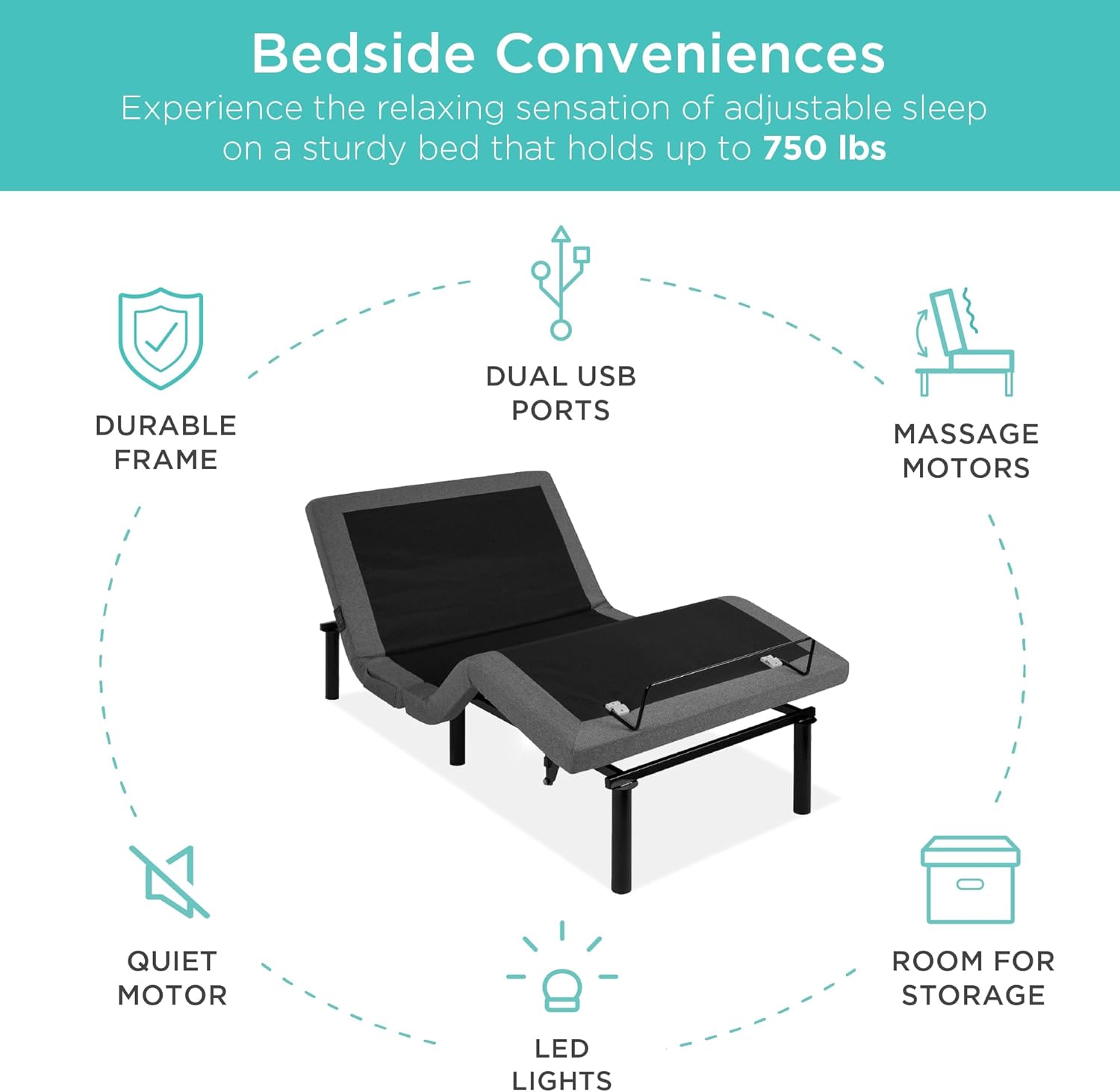 • BEDSIDE CONVENIENCES: Charge your phone with a built-in bedside USB. use the side pocket to store your phone or remote. and turn on night lights underneath to easily find your slippers