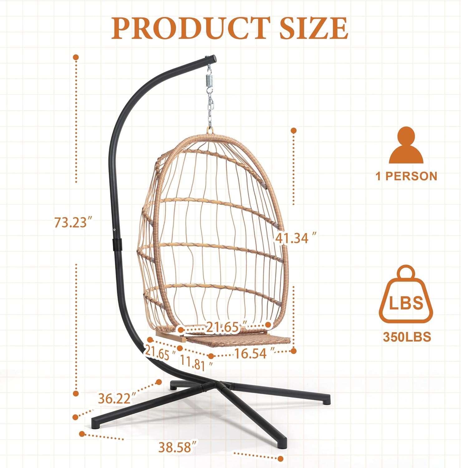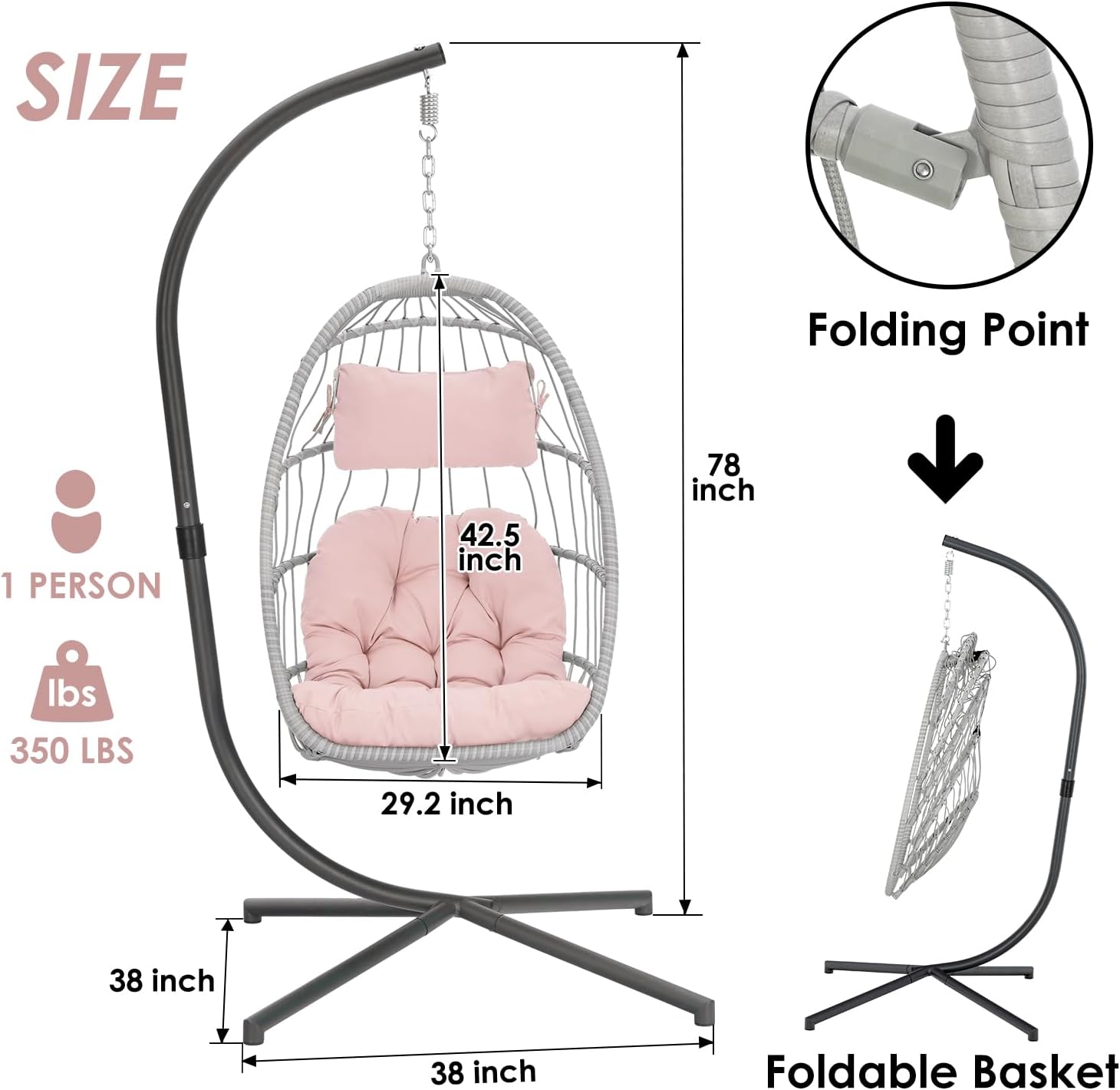- The sturdy suspension chain can hold up to 350 lbs and also easily adjust the height to suit your needs. It adopts a compact folding design and can be used for storage or carrying out camping.