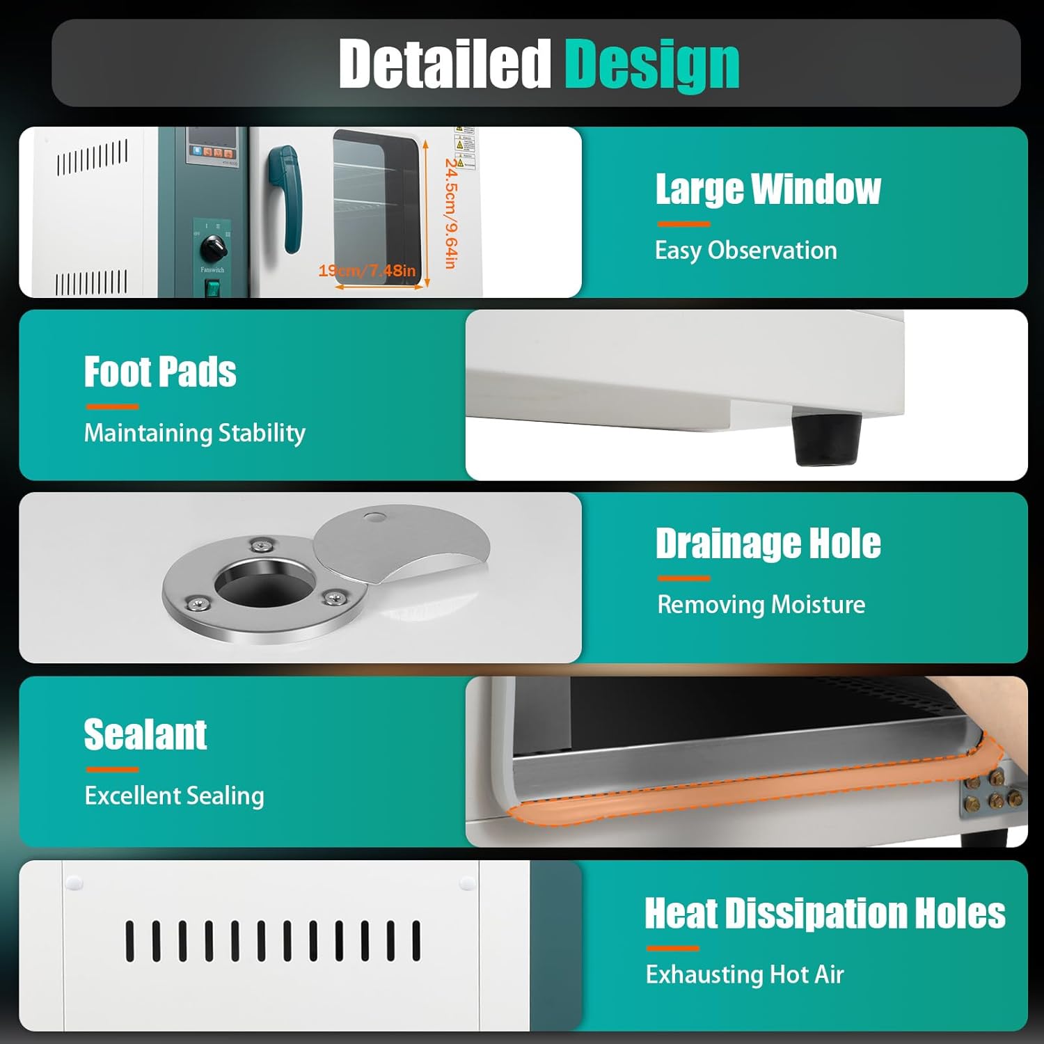- UNIFORM HEATING: The constant temperature blast drying oven can be set to a maximum of 572掳F (minimum 18掳F above room temperature) to accommodate drying. heating. reheating and more. Natural convection promotes air circulation and. combined with an independent fan switch. dries materials faster and more evenly