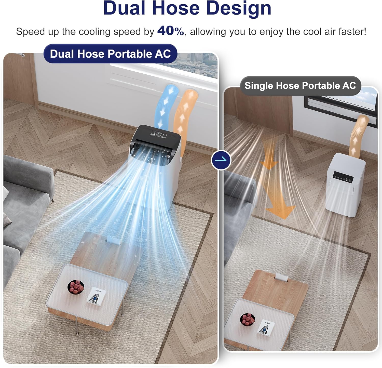 • 【Enhanced Wind Speed & Auto-Swing】 Built-in more powerful and upgraded fan system .with 0-80° Wide-angle airflow and auto-swing function cools down your room in all directions. angle can be freely adjusted and the air is flowing evenly in the whole room .which can distribute the cold air evenly to cool your room at the fastest speed. so that you can feel cold wind anywhere at home.