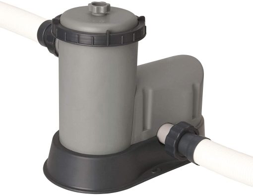 - Complete above-ground pool set comes stocked so you are ready for summer fun with a 1500-gallon filter pump. a four-step ladder. a pool cover. vacuum. and skimmer
