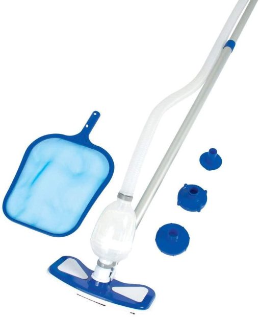 - Complete above-ground pool set comes stocked so you are ready for summer fun with a 1500-gallon filter pump. a four-step ladder. a pool cover. vacuum. and skimmer