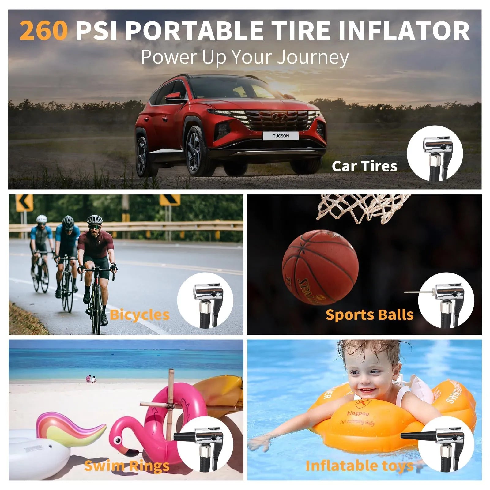 2000A Car Jump Starter with Air Compressor, 5W Solar Panel Portable Power Station, Tire Inflator 260PSI, Car Battery Charger with Inverter Dual 400W AC DC USB Ports, 12V Battery Pack Jump Box