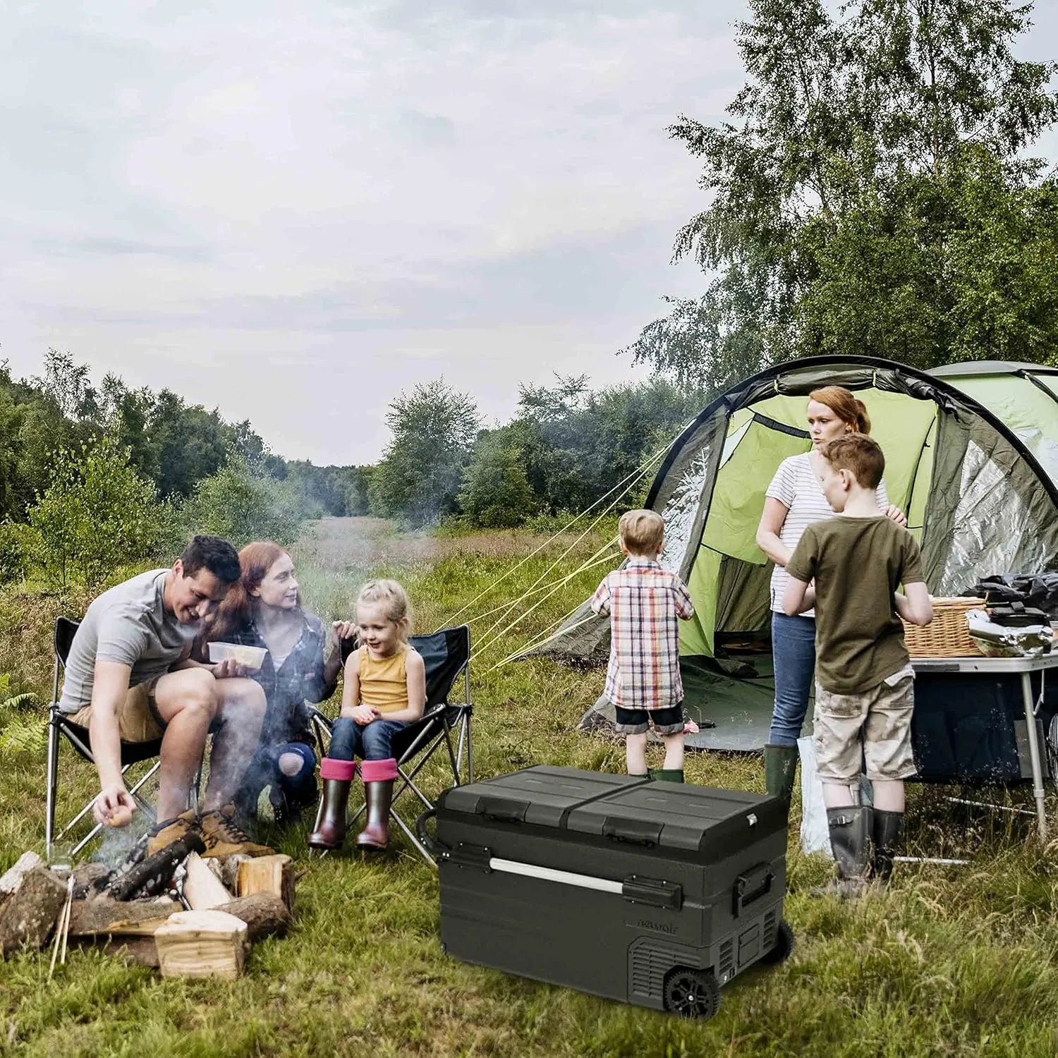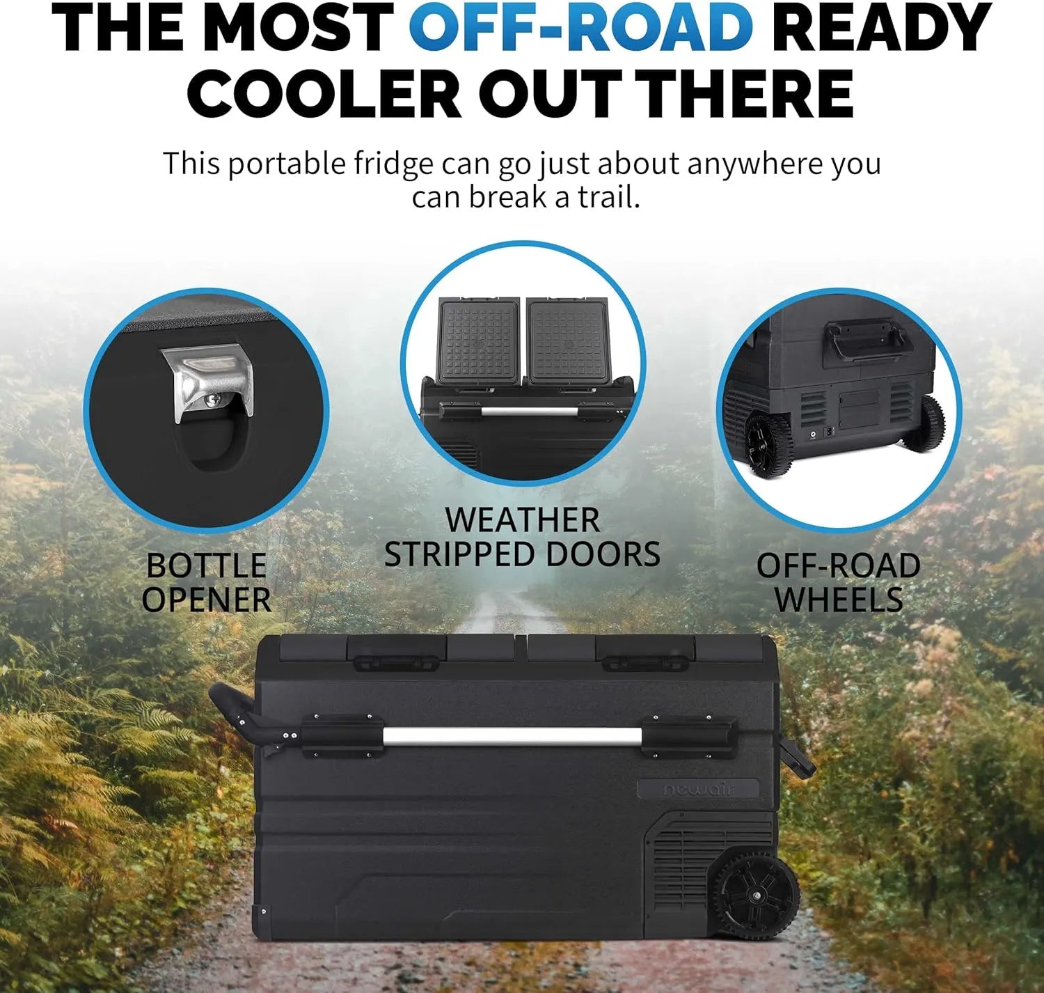 - BUILT FOR ADVENTURE - This electric cooler with off-road wheels also comes with a tough exterior. and retractable handle. making it fit for any outdoor adventure.