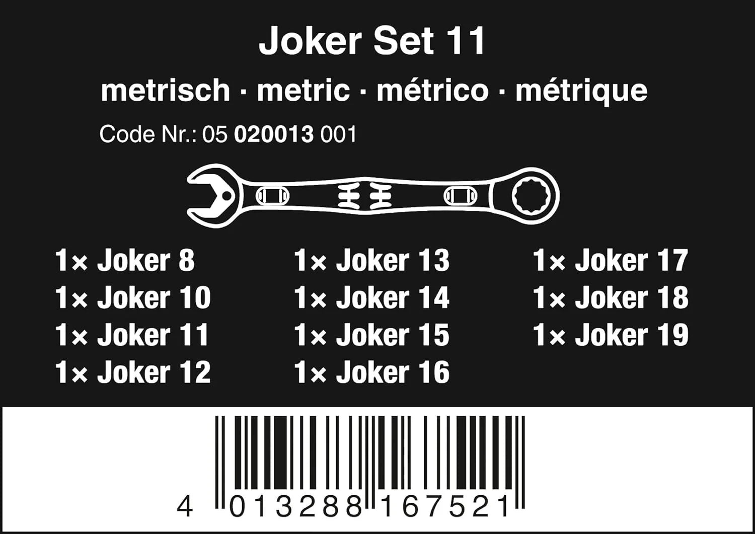 • Includes 3/8-inch ratchet.18 sockets (metric). 2 Flexible Lock Extensions (short and long). Sliding T-handle. Universal joint. Wobble Extension. Adaptor and 18 bits