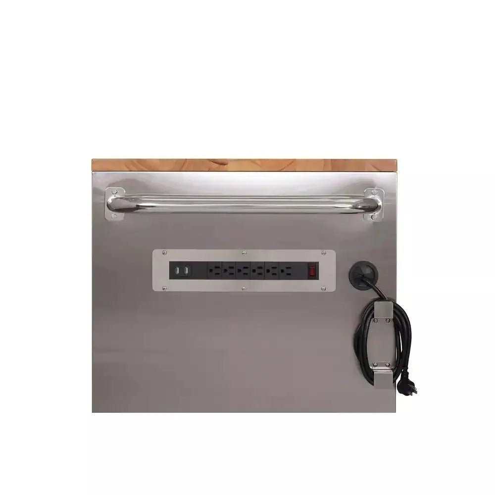 The 72 in. 18-Drawer Mobile Workbench in Stainless Steel is a tool cabinet that combines the perfect blend of drawer storage capacity and functional work surface area for the tool enthusiast. It is constructed with heavier. 21-Gauge steel. This workbench is 24 in. D. which is 6 in. deeper than most standard rolling tool cabinets. providing more usable storage space that is strong enough to support 1.800 lbs. and has 33.545 cu. in. capacity. The 1 in. thick solid wood top is sealed with a protective polyurethane coating to protect it from the elements. The workstation is equipped with a power center with 6 outlets and 2 USB ports. Premium drawer liners are included to help keep tools from moving around. Each drawer is equipped with 100 lbs. rated soft closing ball bearing slides. The top long drawer and three bottom drawers are equipped. with double 100 lb. rated soft closing drawer slides for increased weight capacity up to 200 lbs. which enables you to store heavier bulk items. This mobile work center has 6 large. 5 in. x 2 in. all swivel casters and a steel tubular side handle. which allow you to easily move around. even when fully loaded. The Mobile Work Center also has an internal keyed locking system. with 2 keys provided. for added security.