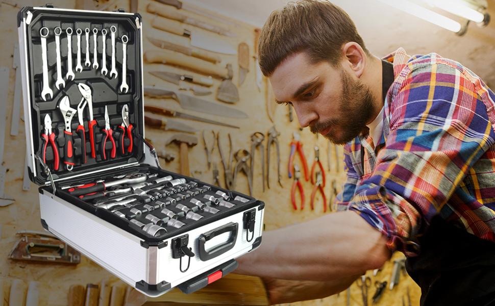 - ud83dudd28u3010Portable Tool Boxu3011The Household Hand Tool Set is a trolley case which made of aluminum alloy.Tool sets looks like a suitcase and can be pulled anywhere freely. Is a good choice for Christmas Day gifts.