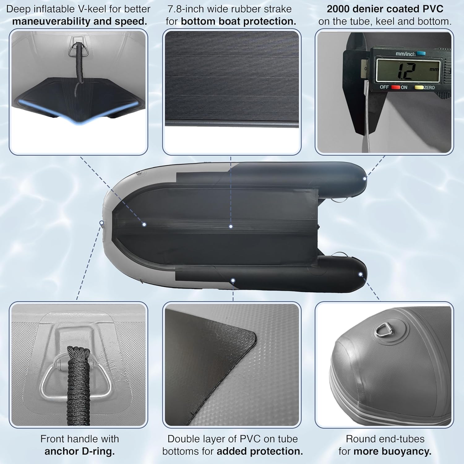 - Designed for Better Maneuverability and Speed: The deep inflatable V-keel provides better maneuverability and speed. while the rounded stern tubes provide more buoyancy for optimized performance.