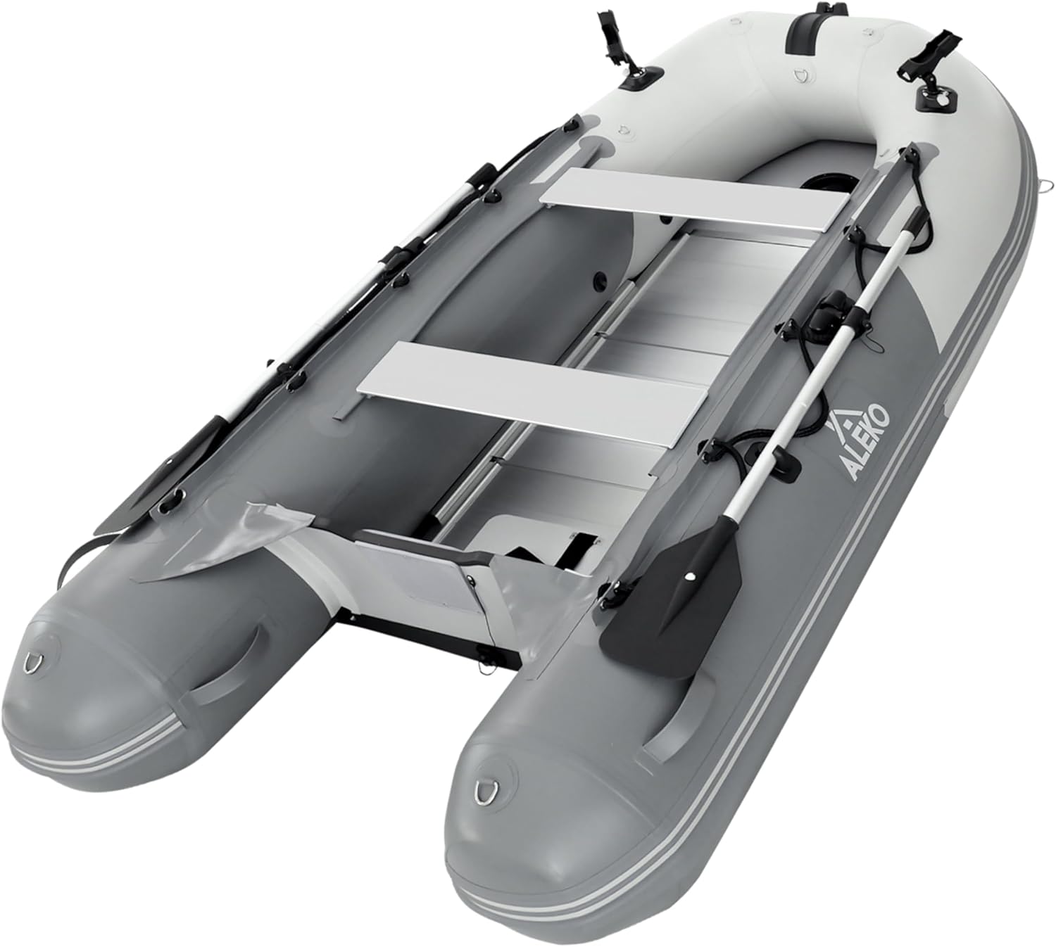 - Full Kit Included: (1) Inflatable Boat; (1) Hull; (2) Aluminum Oars; (1) Aluminum Bench; (1) Aluminum Floorboard; (1) Floorboard Storage Bag; (2) 360-Degree Adjustable Fishing Rod Holders; (1) Carry Bag; (1) Foot Pump; (1) Repair Kit; (1) Manual; (1) Registration Document