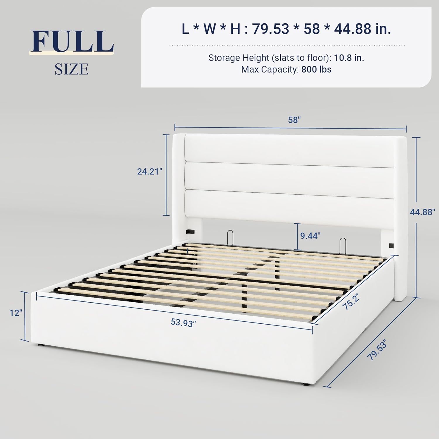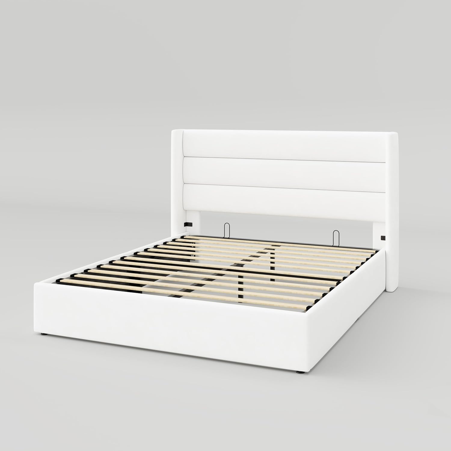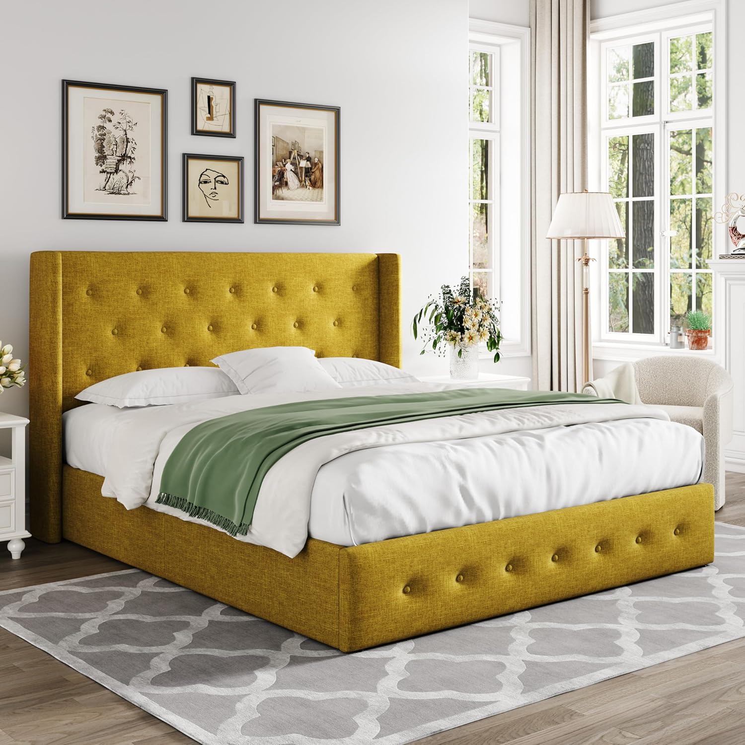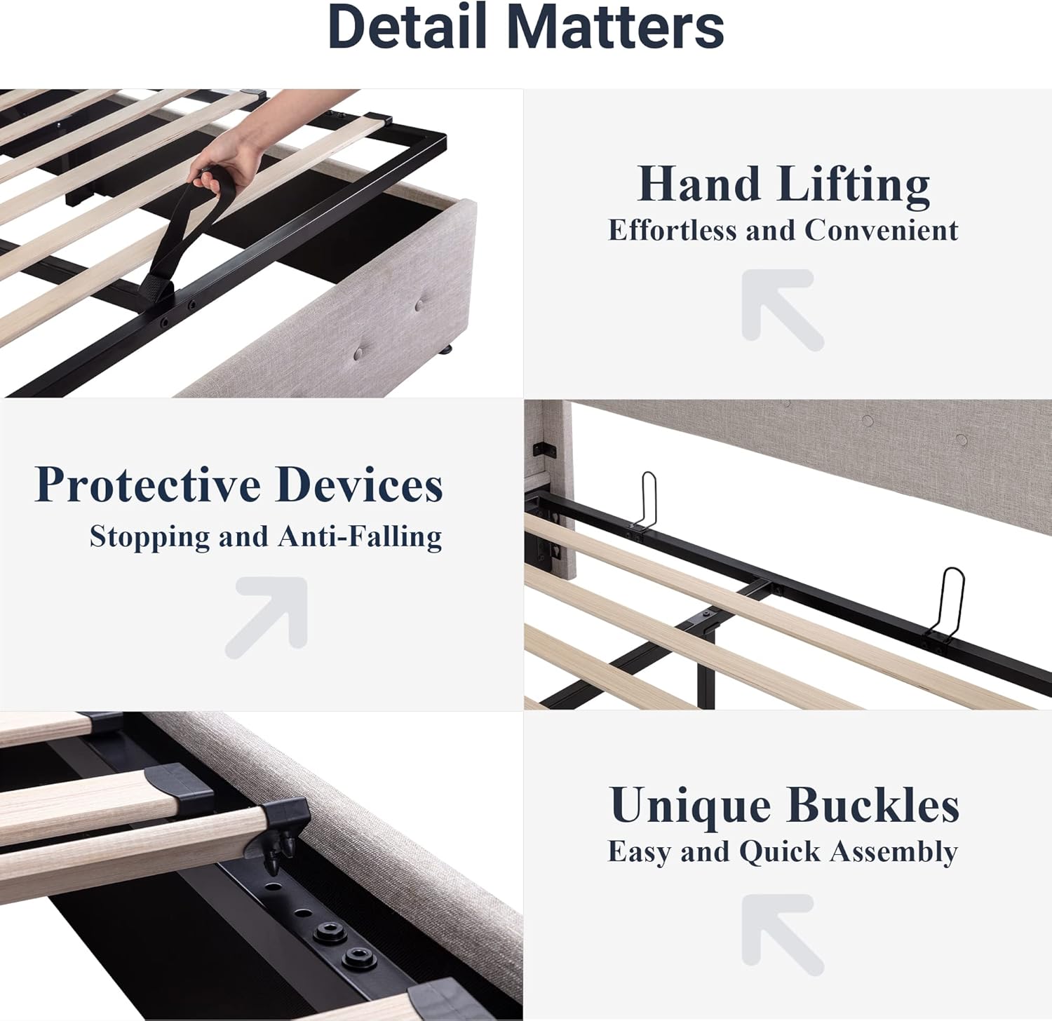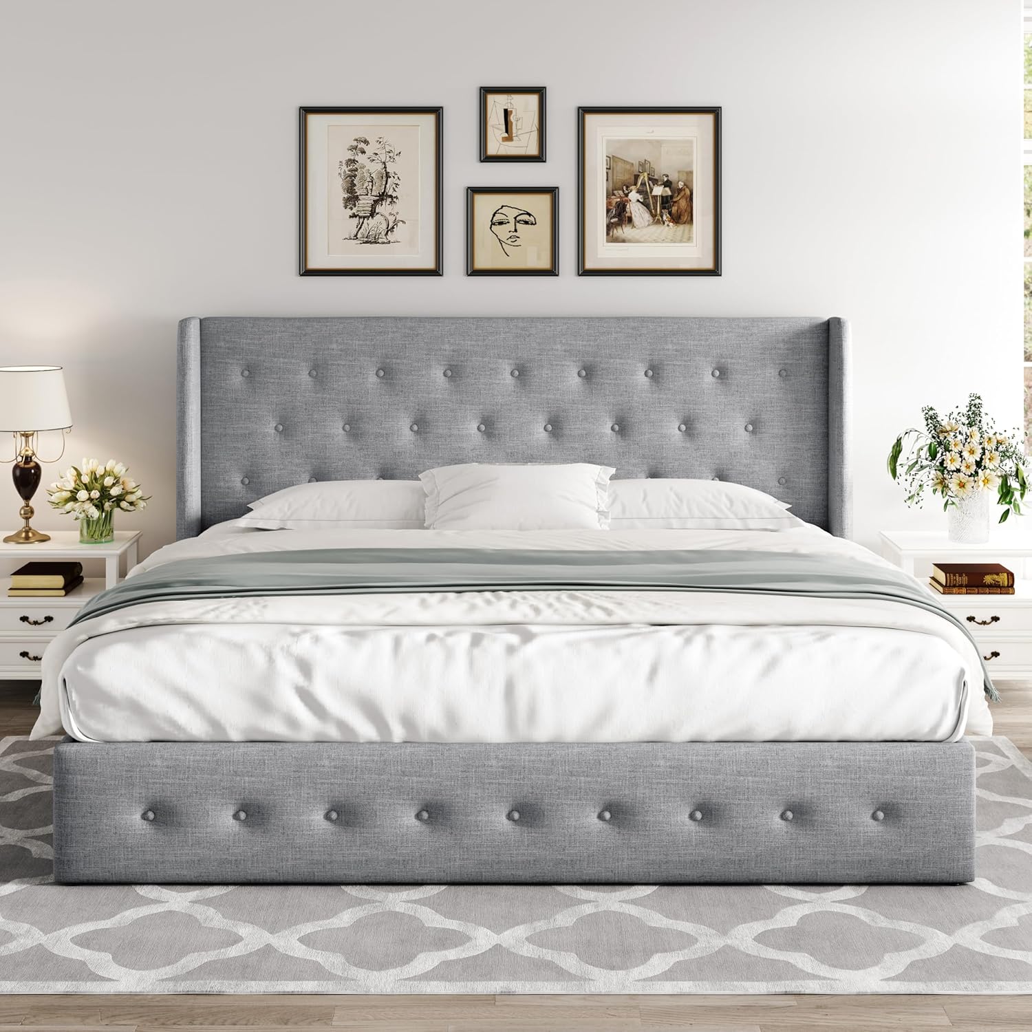 • Allewie Queen Size Lift Up Storage Bed, Modern Wingback Headboard, Hydraulic Support, No Box Spring Needed, Light Beige