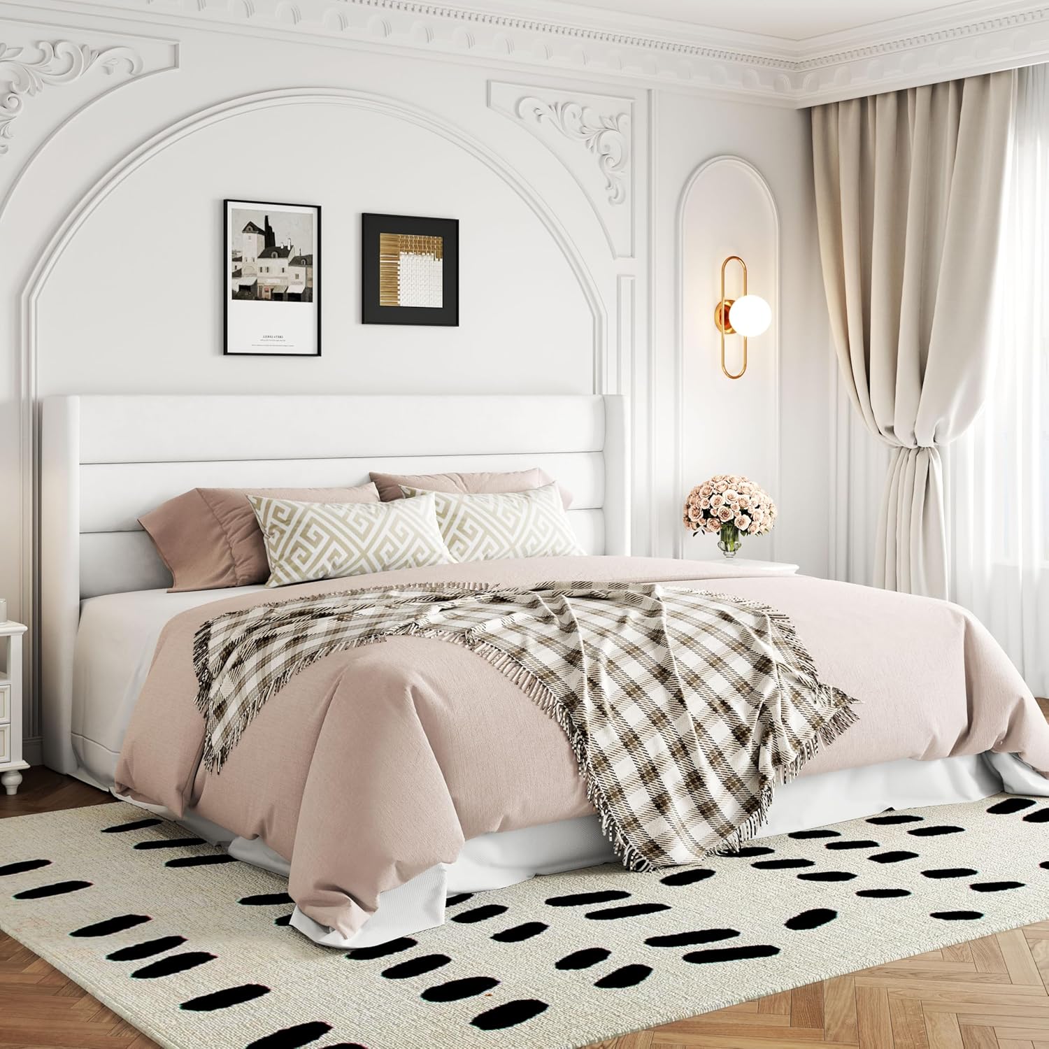 • Elegant Headboard: High wingback headboard adds elegant aesthetics to your bedroom. Horizontal channel pattern illuminates stylish and minimalist trends