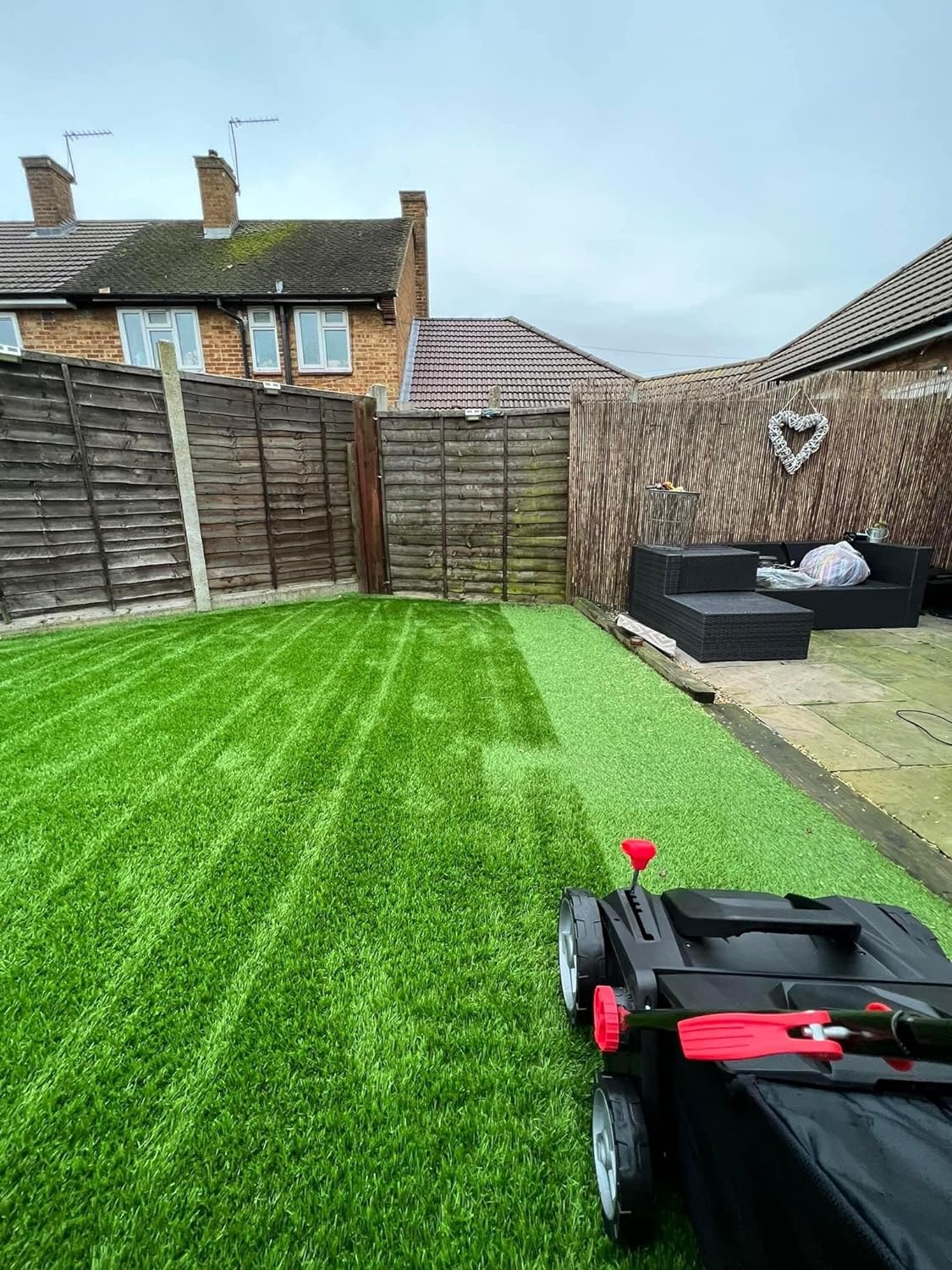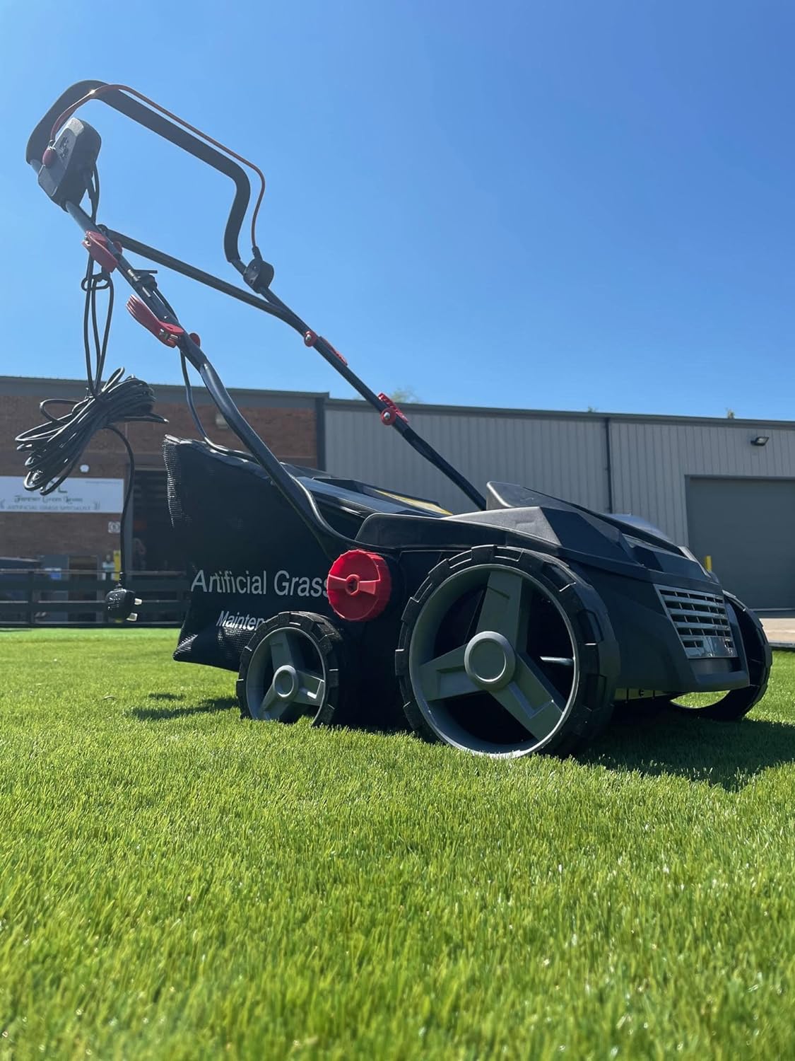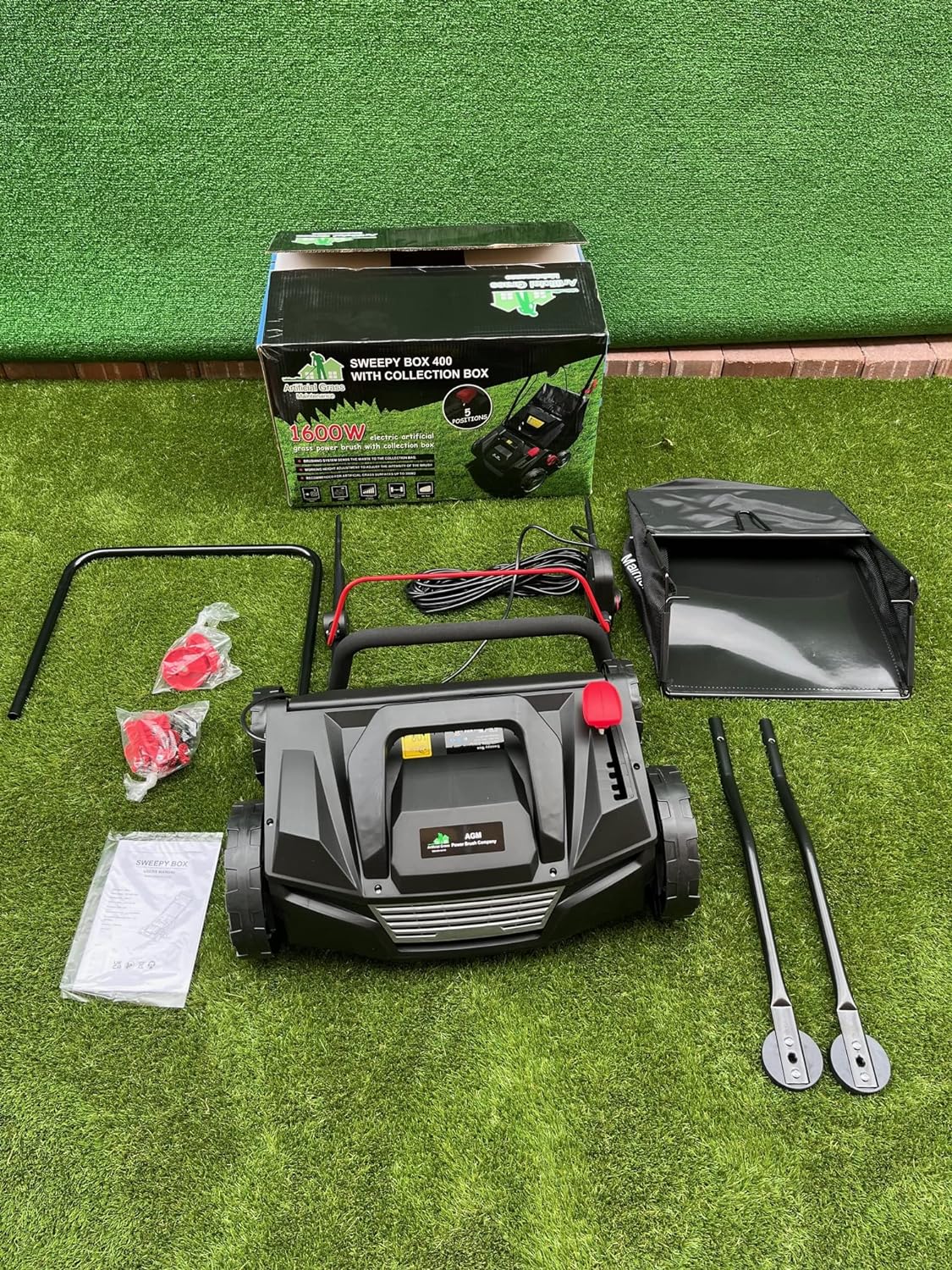- Please note that if your artificial grass edge is against a wall or fence. it will leave a wheel width (around 6”) unswept along the edge so will need a quick sweep with a handheld brush.