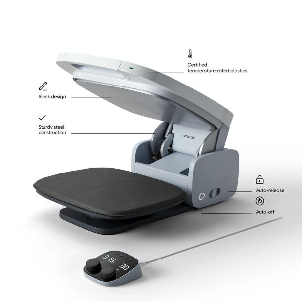 Introducing the perfect professional heat press made for home use. Merging commercial power with a sleek. home-friendly design. Autopress�� harnesses state-of-the-art automated features to help you make more in less time. Zero Effort�� operation lets you close the machine with just two fingers. and the handle's motor does the rest. Dial in precise time & temp settings on the control pod to ensure consistent results. whether you're working on a big-business production or a one-time passion project. Reaching up to 400掳F (205掳C). the ceramic-coated heat plate automatically adjusts to materials up to 2 in (5 cm) thick �� that means no pressure adjustments required. The machine auto-releases when press is complete. Press with peace of mind as safety-conscious features like auto-off & certified temperature-rated plastics ensure a worry-free experience. Works with major brands of iron-on (HTV). Infusible Ink�� & sublimation materials. Excellent complement to all cutting machines.