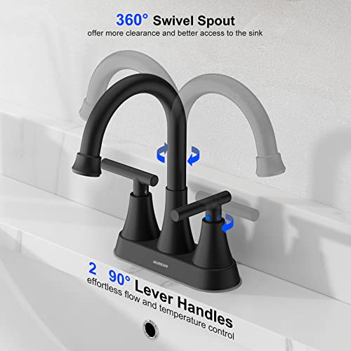 • Bathroom Faucets for Sink 3 Hole, Hurran 4 inch Matte Black Bathroom Sink Faucet with Pop-up Drain