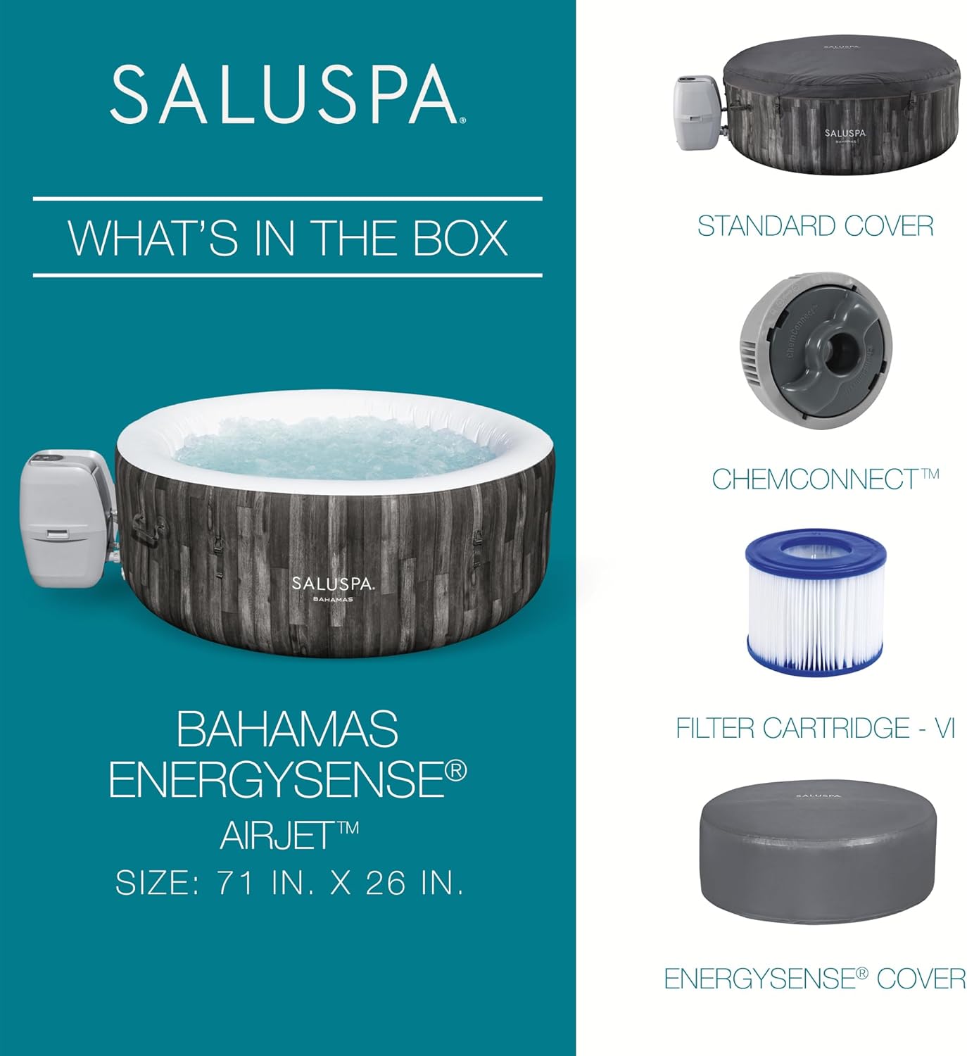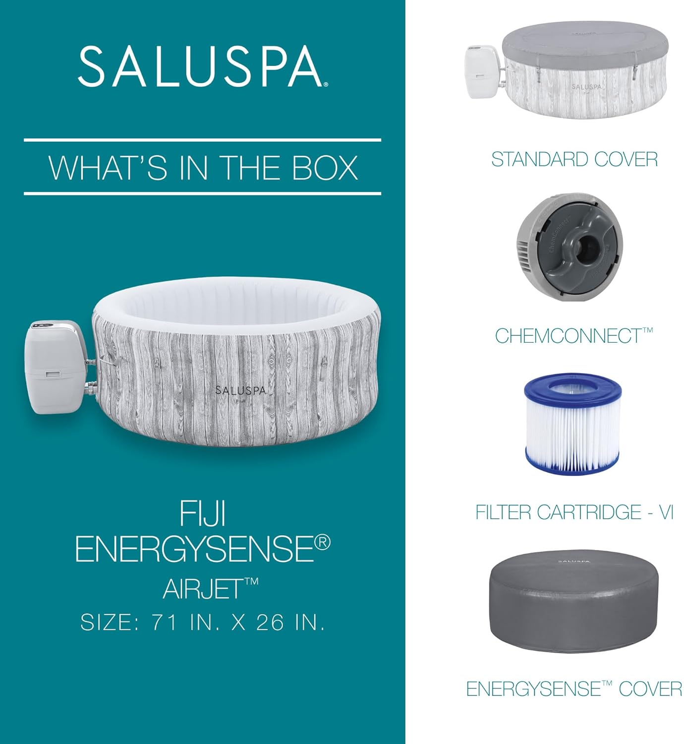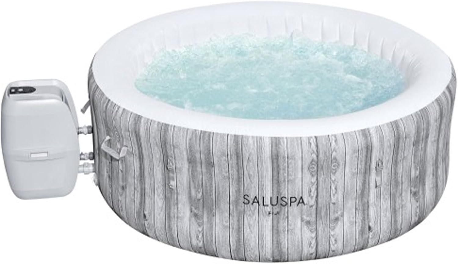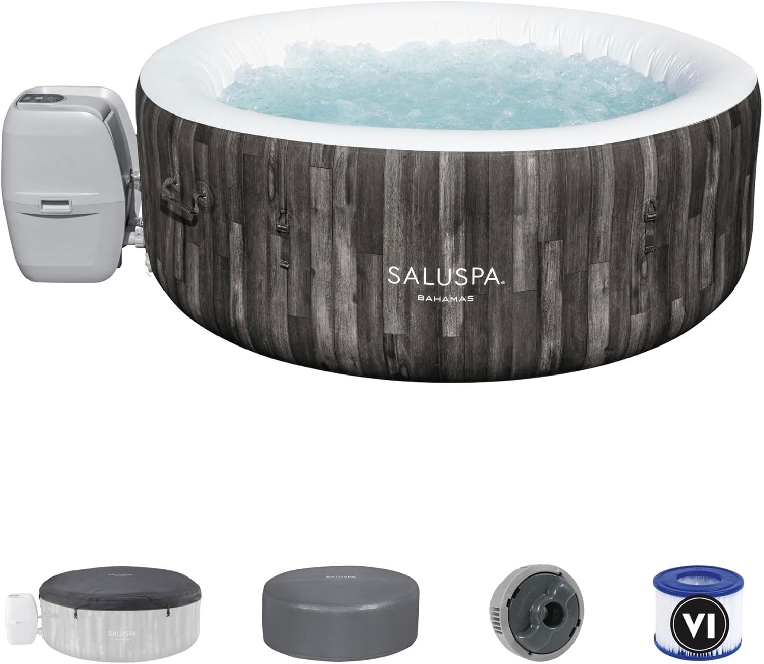 - Equipped with a pump that inflates the spa and more for a convenient spa that includes a cover. spa pump. chemical floater. 2 filter cartridges (VI). 1 repair patch. and a 6-foot-long cord