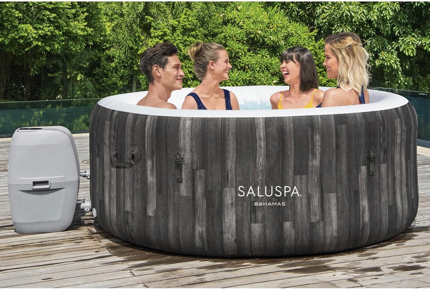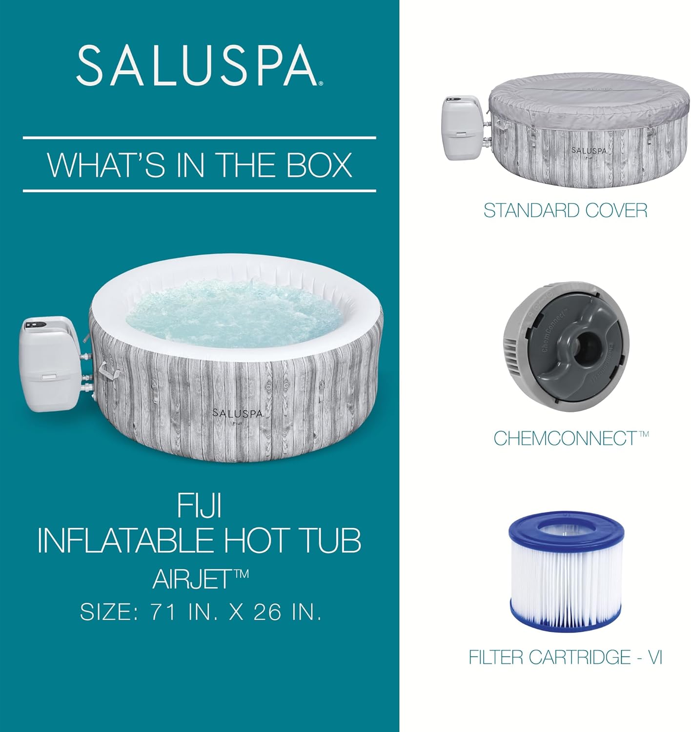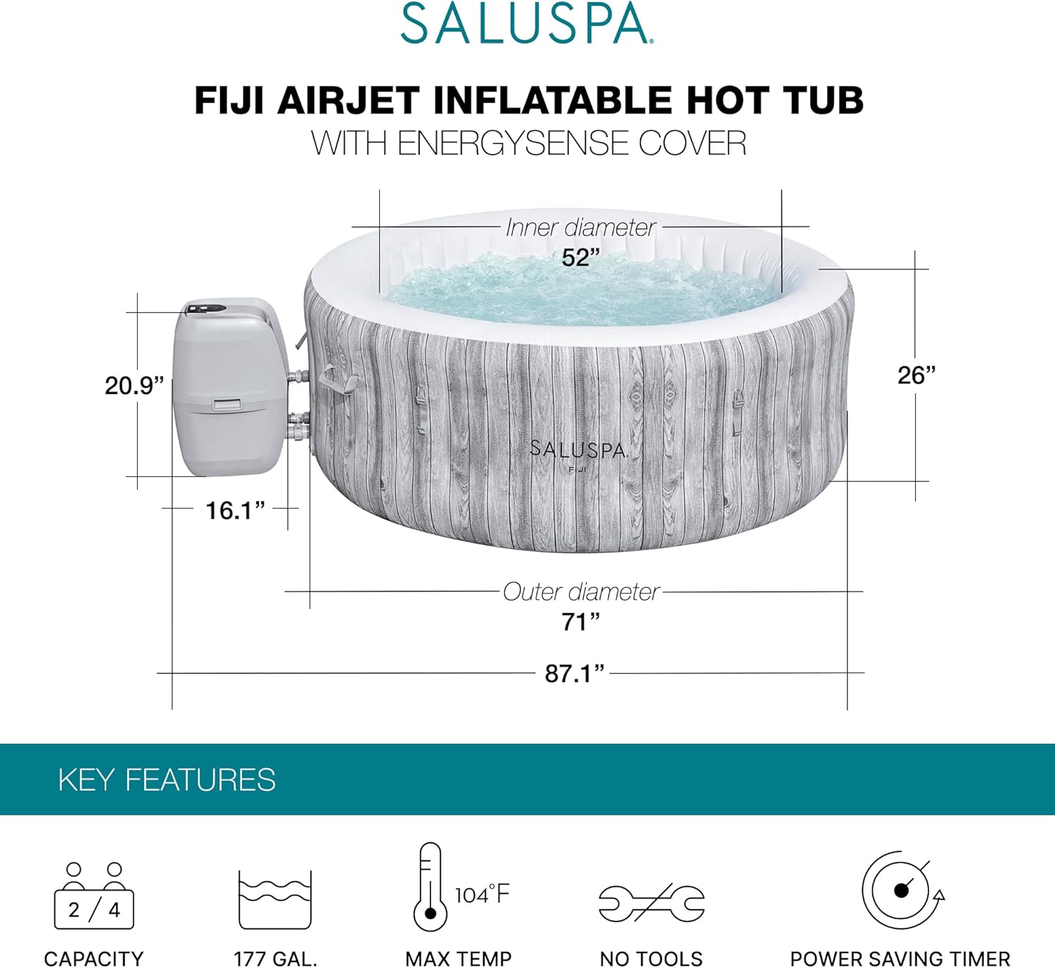 - Round Fiji hot tub provides a soothing massage experience with 120 bubbling warm jets for up to 2 to 4 people and reaches up to 104 degrees F for ultimate relaxation