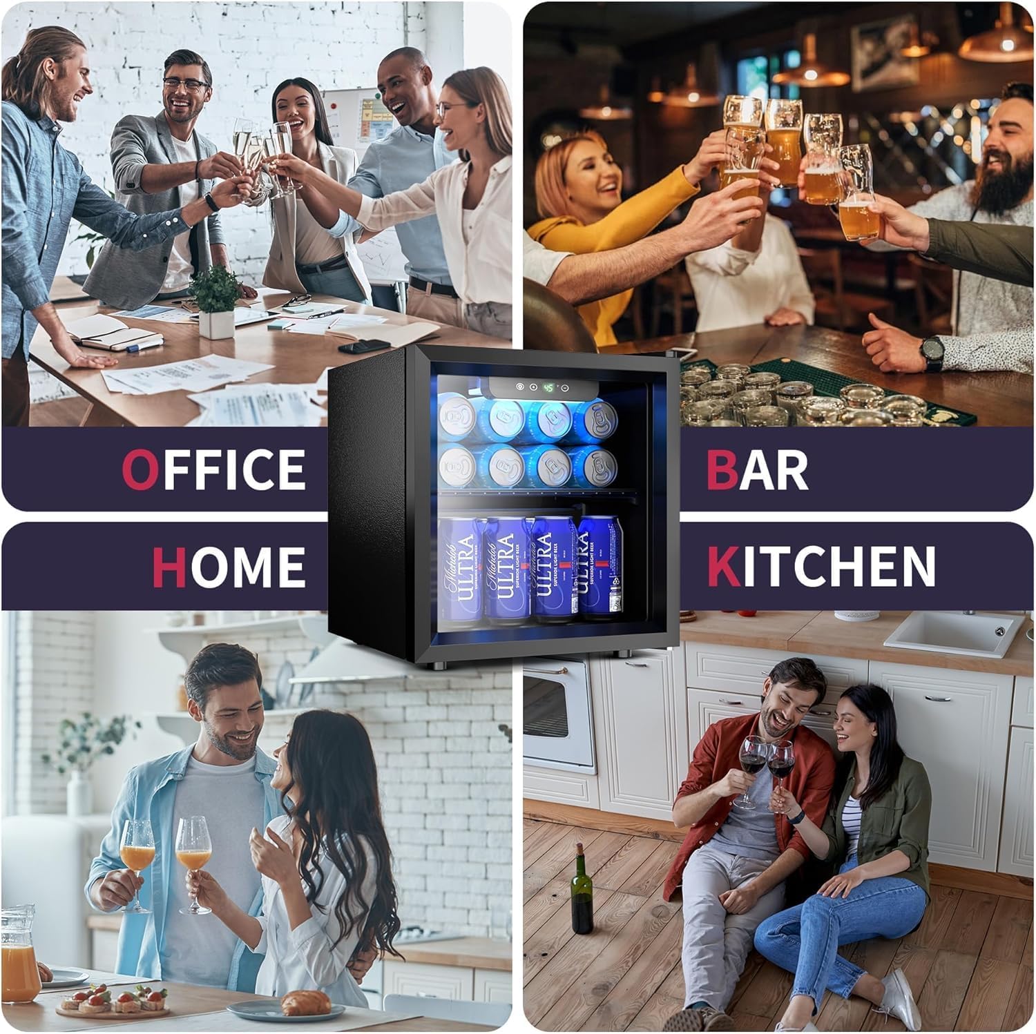 • Beverage Refrigerator Cooler - 126 Can Mini Fridge with Glass Door for Soda Beer or Wine, Beverage Cooler for Home, Office, Bar with Adjustable Removable Shelves, Silver