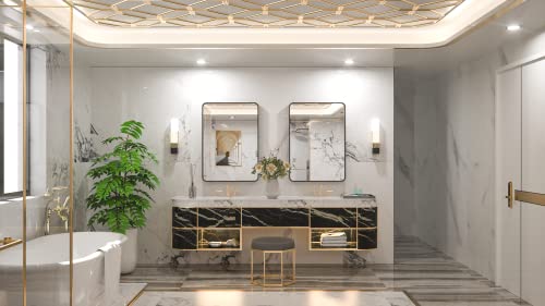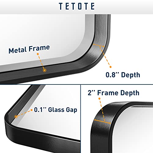 - ��Practical and decorative framed mirror��TETOTE's 22 x 30 inch bathroom wall mirror is made of HD glass and premium metta black metal frame. Rectangle shape with round corner of the framed mirror features the modern style. Meets the decor needs to industry. rustic and modern style of bathroom. bedroom vanity. entryway. farmhouse. hotel or salon