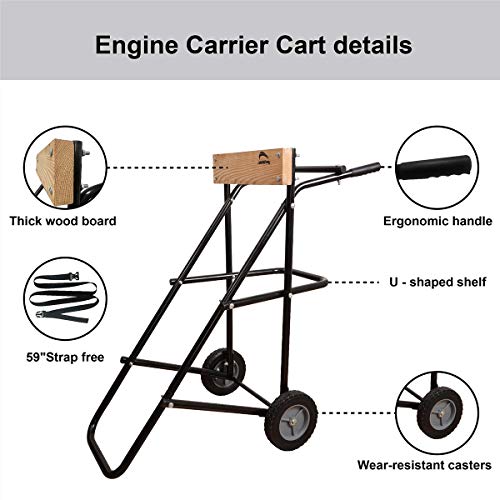 - ��Good Construction��Good quality and long lasting.Heavy duty steel tube frame. as well as durable rubber tire. tubes are distortion-free. And the Carrier Cart is heavy duty so that the Outboard Boat Motor Stand could hold weight up to 315Lbs.