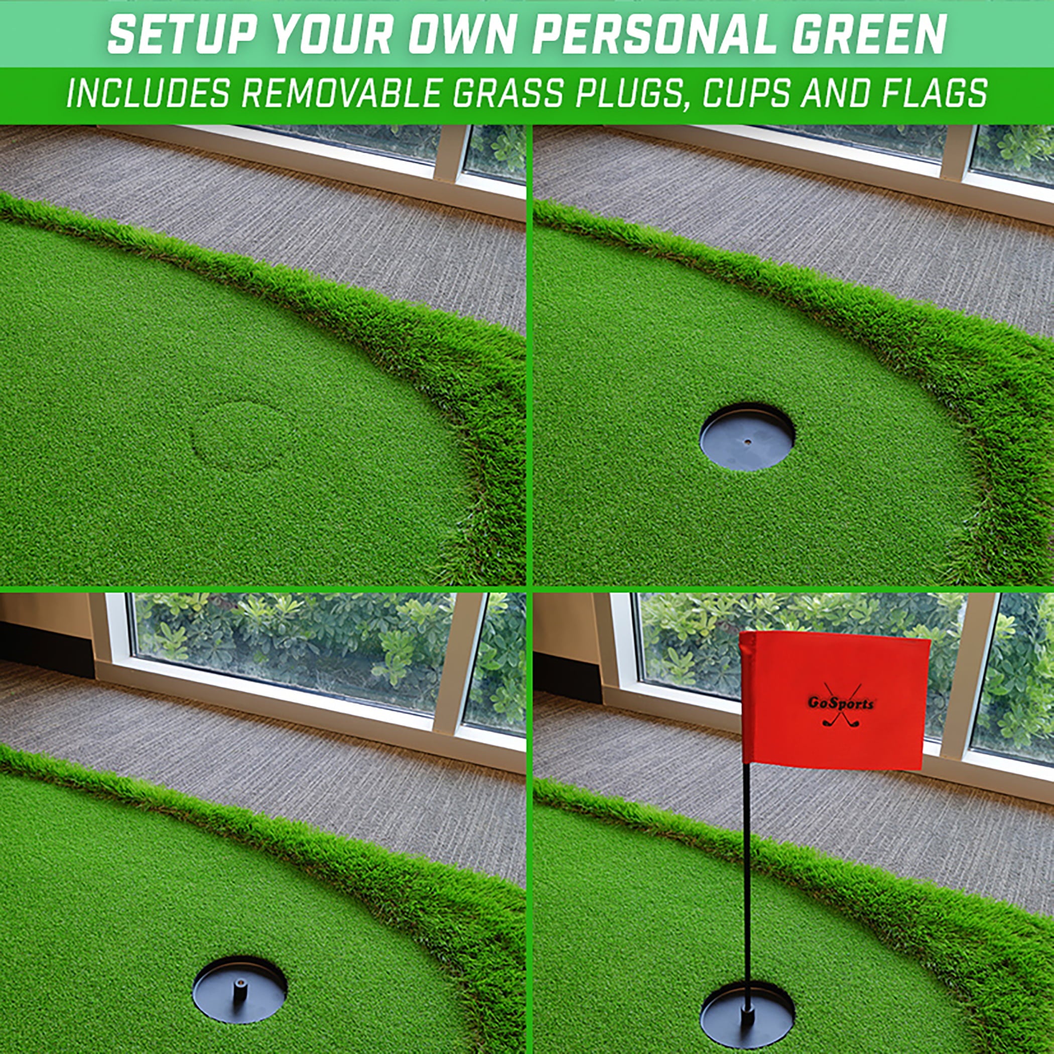 The GoSports 12'x5' TriTurf Golf Putting Green is the ultimate indoor and outdoor putting green for mastering your short game. Now you can bring the golf course to your home. office. backyard and more for putting practice anytime and anywhere. The set includes a large 12 feet x 5 feet premium putting mat that simulates real green speeds with 6 regulation size cups. 6 flags and 6 grass plugs. The flags and cups are removable so you can create your own personal green and accommodate any preferred setup. The mat features our premium GS Turf that is designed to roll like a real putting green to provide the ultimate practice experience for golfers of all skill levels. The base is made of heavy-duty rubber for grip on any surface and to lay flat for seamless practice. Now golfers can gain the advantage by practicing their putting skills and shaving strokes off their score when out on the course. Take your short game to the next level today with GoSports 12'x5' Golf Putting Green!Brand:GoSports Manufacturer Part Number:GOLF-PUTTGREEN-12x5 Manufacturer:P&P Imports LLC Assembled Product Weight:36 lb Color:Green Model:GOLF-PUTTGREEN-12x5 Material:Foam. 10MM Turf