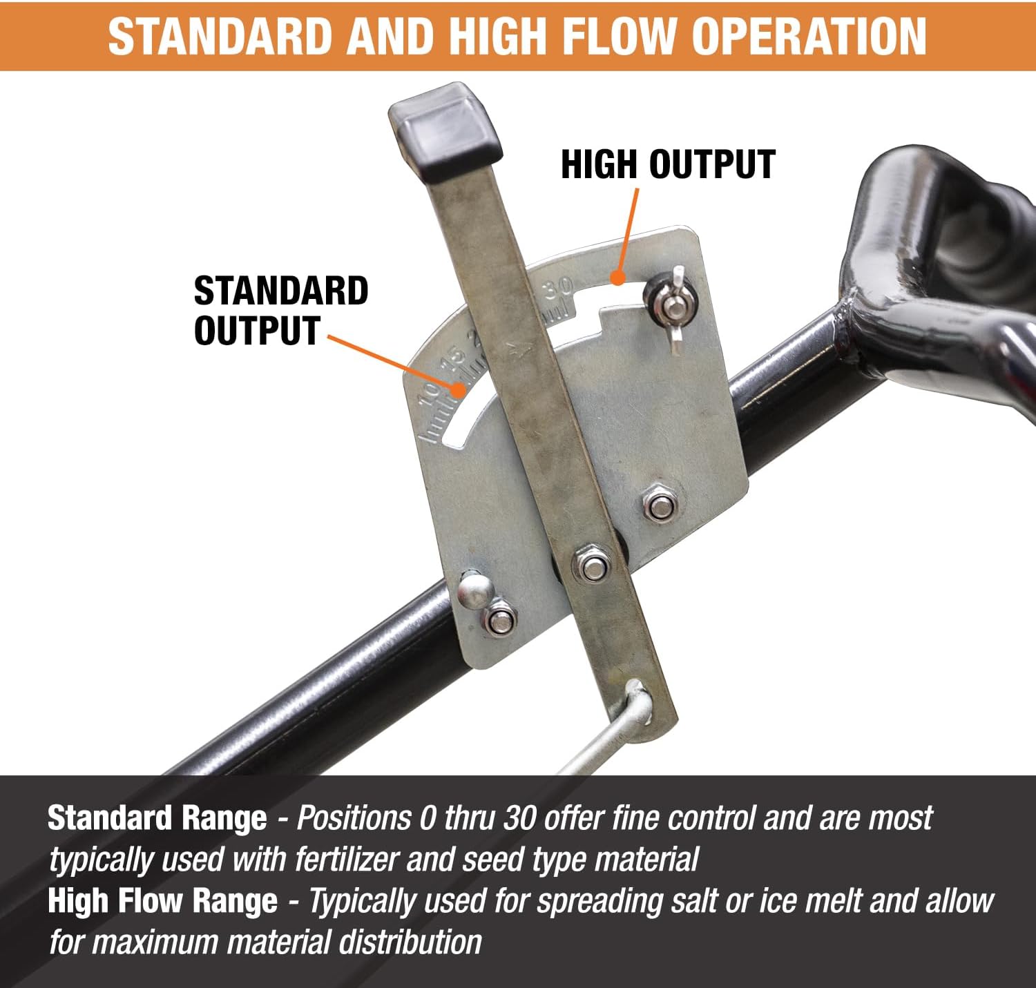 - Precise Material Control: Simple lever and adjustable deflectors allow optimal spread coverage up to 24 ft.. protecting walkways and garden beds while ensuring efficient application.