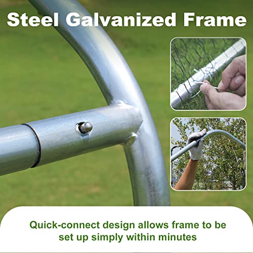 • ��Convenient & Safety Lockable Door��锛�This chicken run for yard with cover is designed with a firm gate. reinforced door. and lock function for easy access in and out. The narrowed gap to avoid chickens escaping and wild animals entering.
