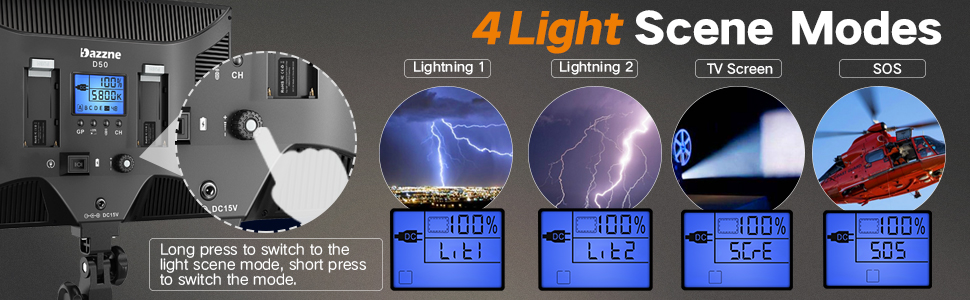 • Bi-colors & LCD display: The Bi-color temperature of the video light varies from 3000K(warm) to 8000K(white). Brightness can be adjusted from 0% to 100%. Luminance is up to 3600lux/0.5m. 1150lux/1m. A LCD screen clearly displays the parameters of brightness and color temperature. which helps you operate easily and work more efficiently.