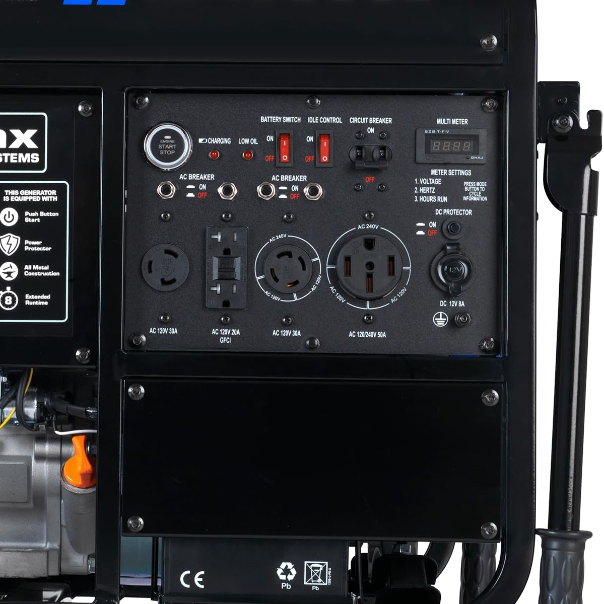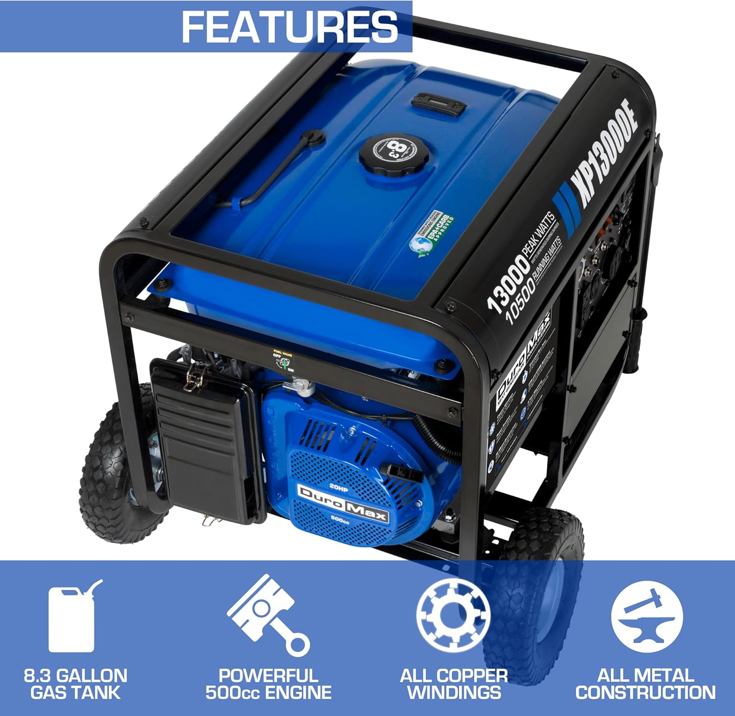 • DuroMax XP13000EH 13,000-Watt Dual Fuel Portable Generator - Gas & Propane, Electric Start, Whole Home Backup Power, Transfer Switch Ready, RV & Emergency Ready