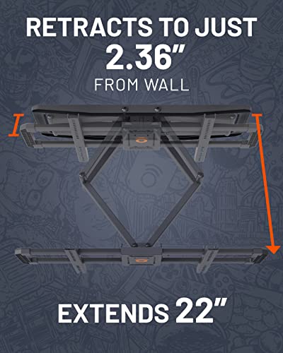 - Pull your TV out 22" away from the wall and point it anywhere in the room with 130潞 of smooth swivel. Retracts back 2.4" from the wall for the real slim shady look.
