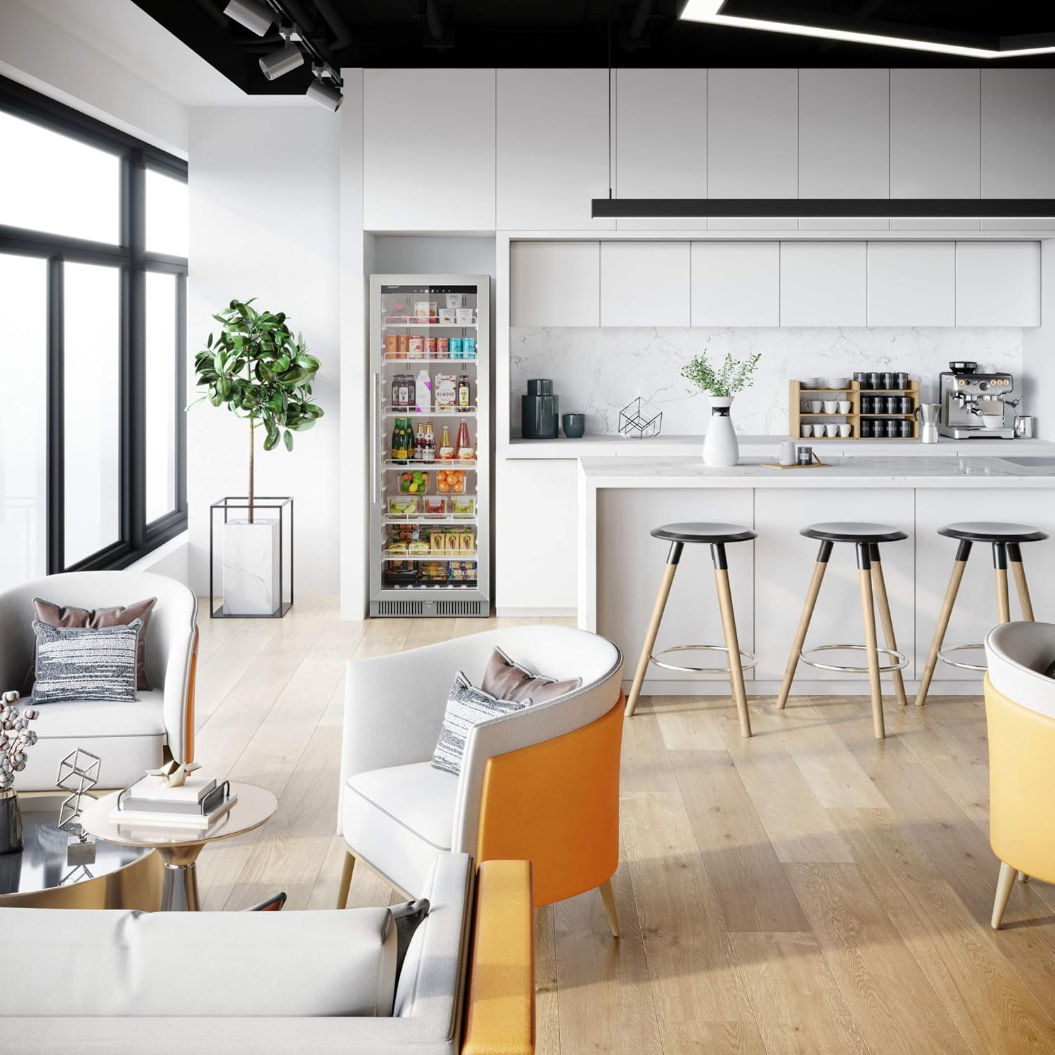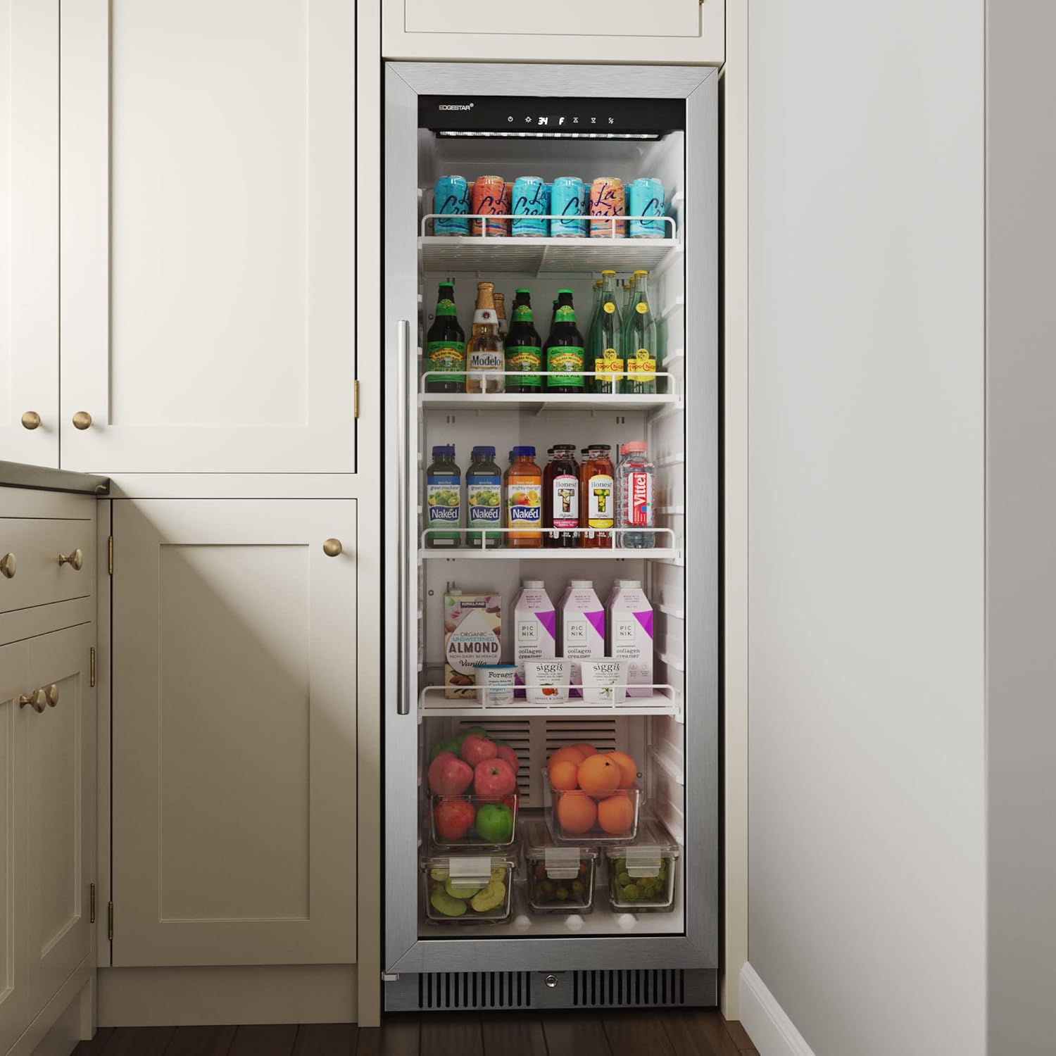 - Easily monitor and change the temperature with the sleek touch control panel and LED lighting elegantly displays your beverage collection