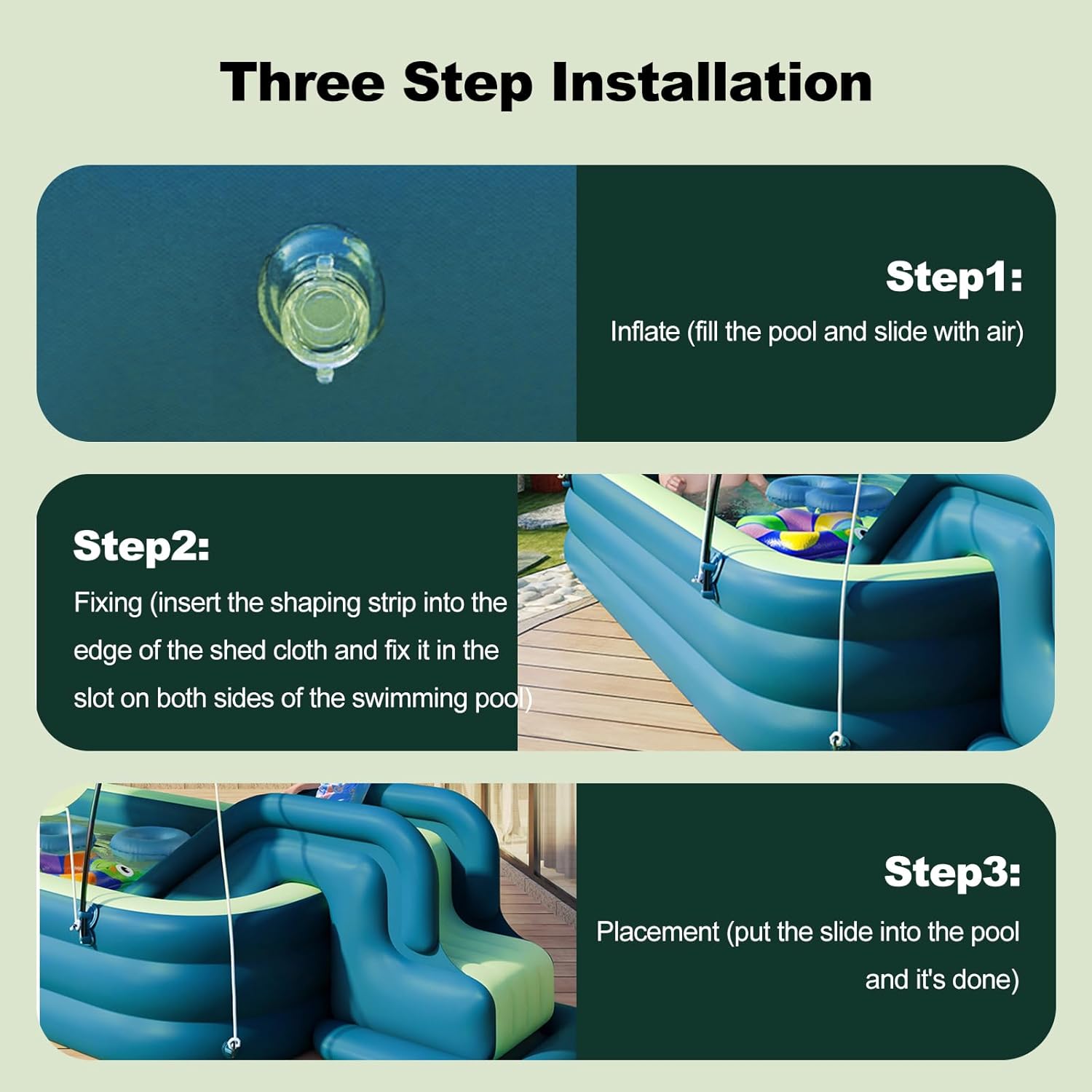 • 【Family Swimming Pool】The inflatable swimming pool can accommodate 1-4 people. the water slide adds more fun to the water. you can play with your kids in the backyard. it will bring you a lot of joy.