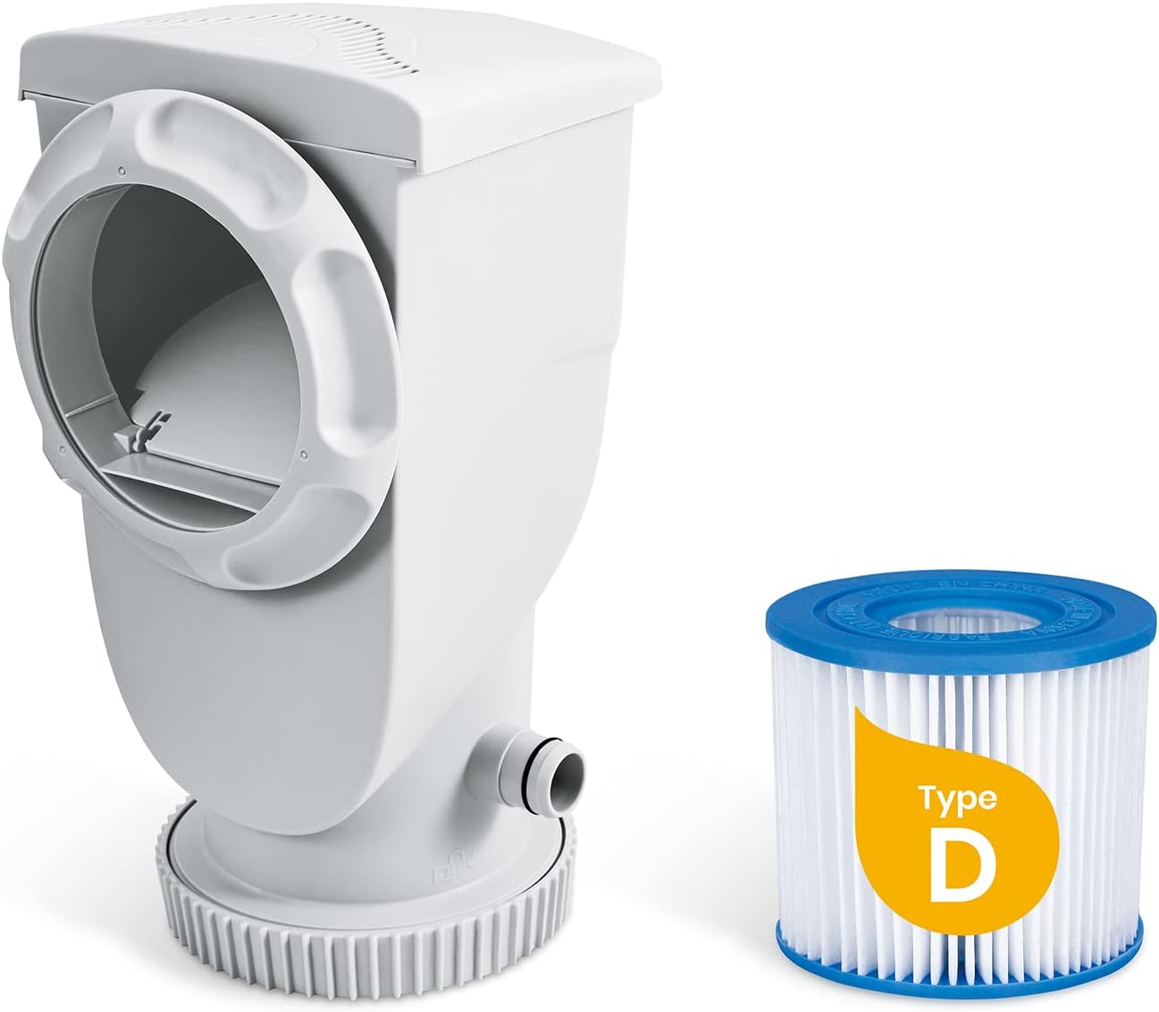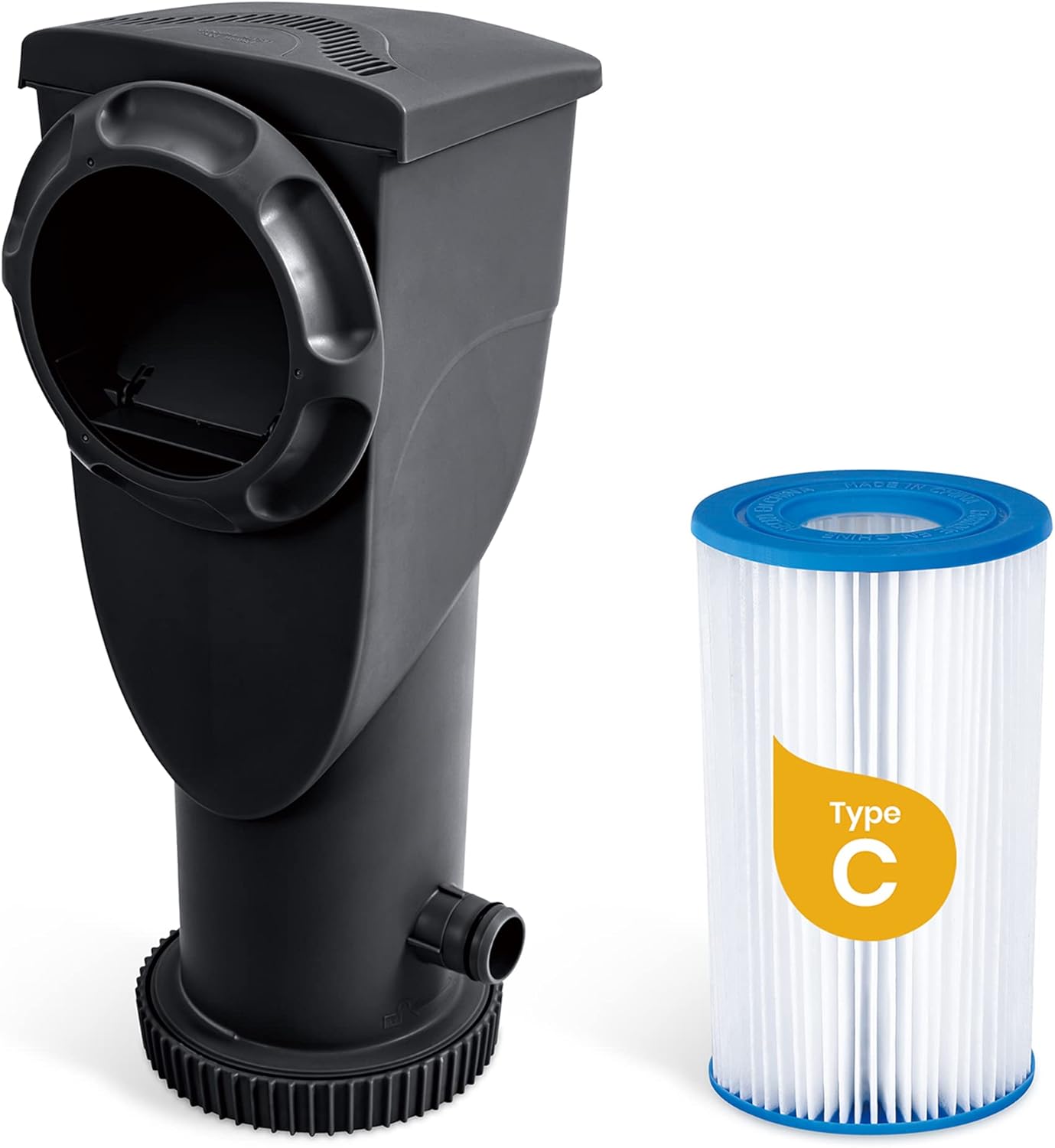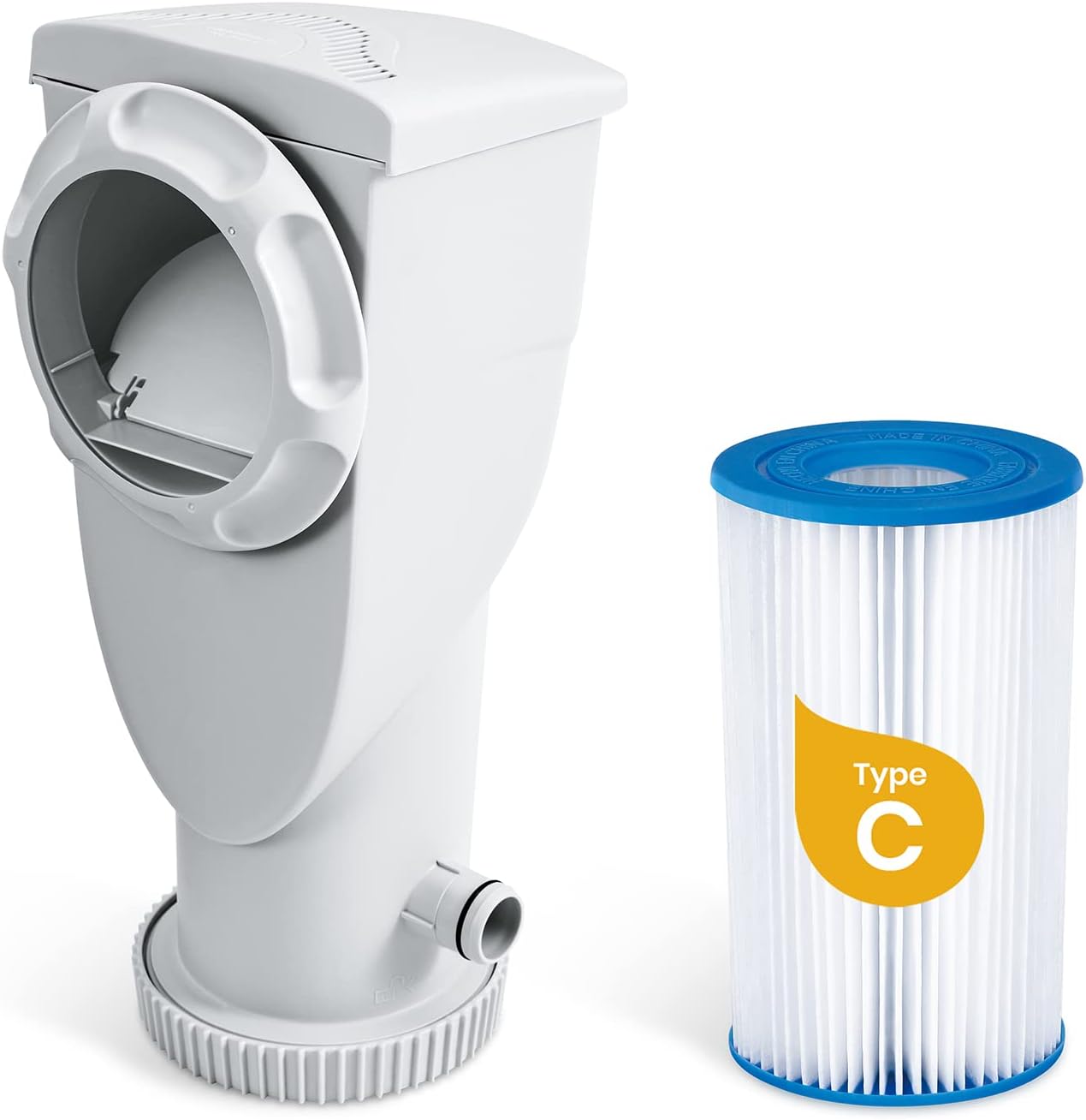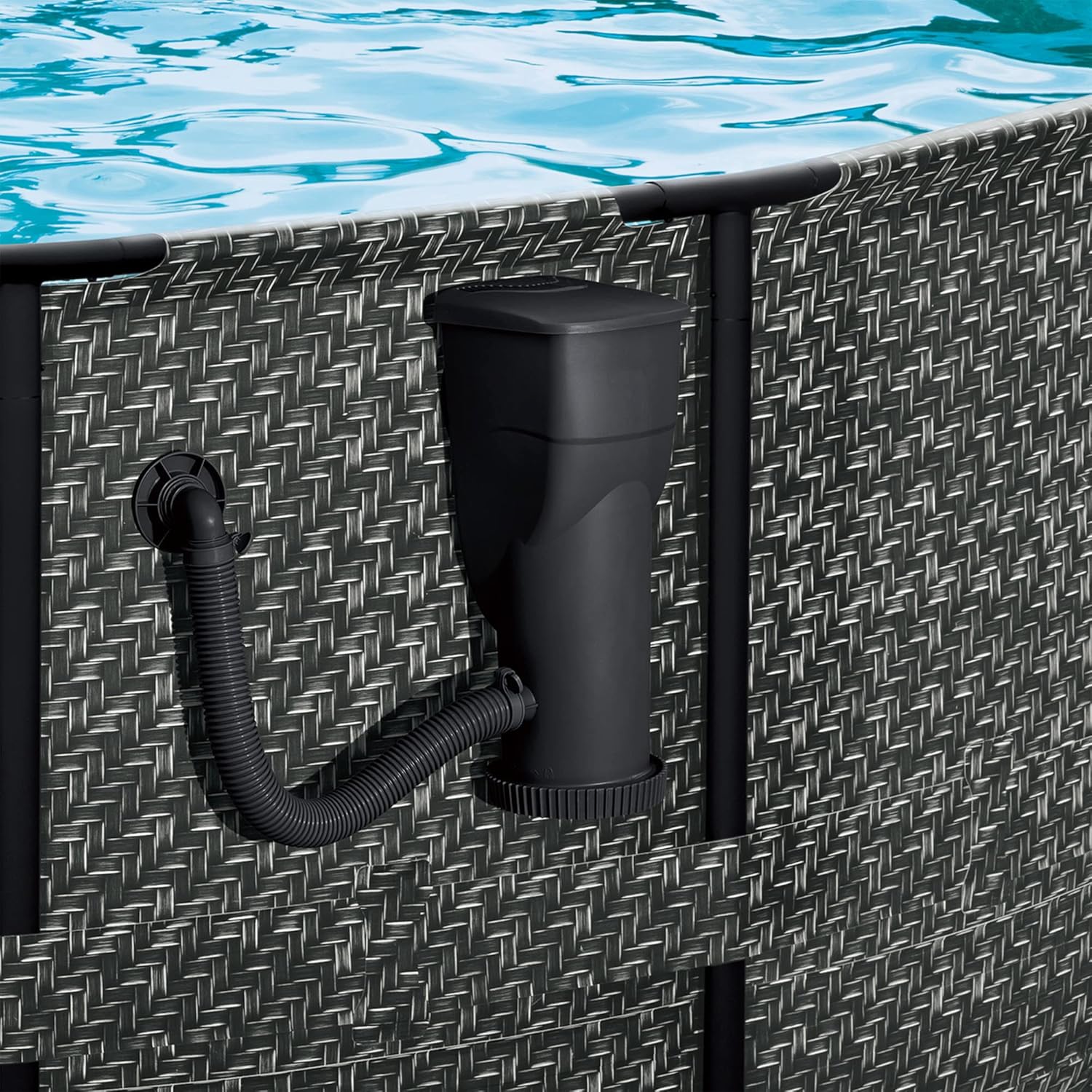 - Multi-function 2-in-1 filter pump and skimmer keeps pool water clean and clear for an ideal convenient accessory
