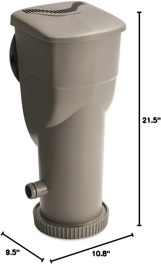 - Filter pump attaches to the pool's sidewall to avoid accidental trips and to provide easy maintenance; Dimensions (L x W x H): 9.50 x 10.80 x 21.50 inches