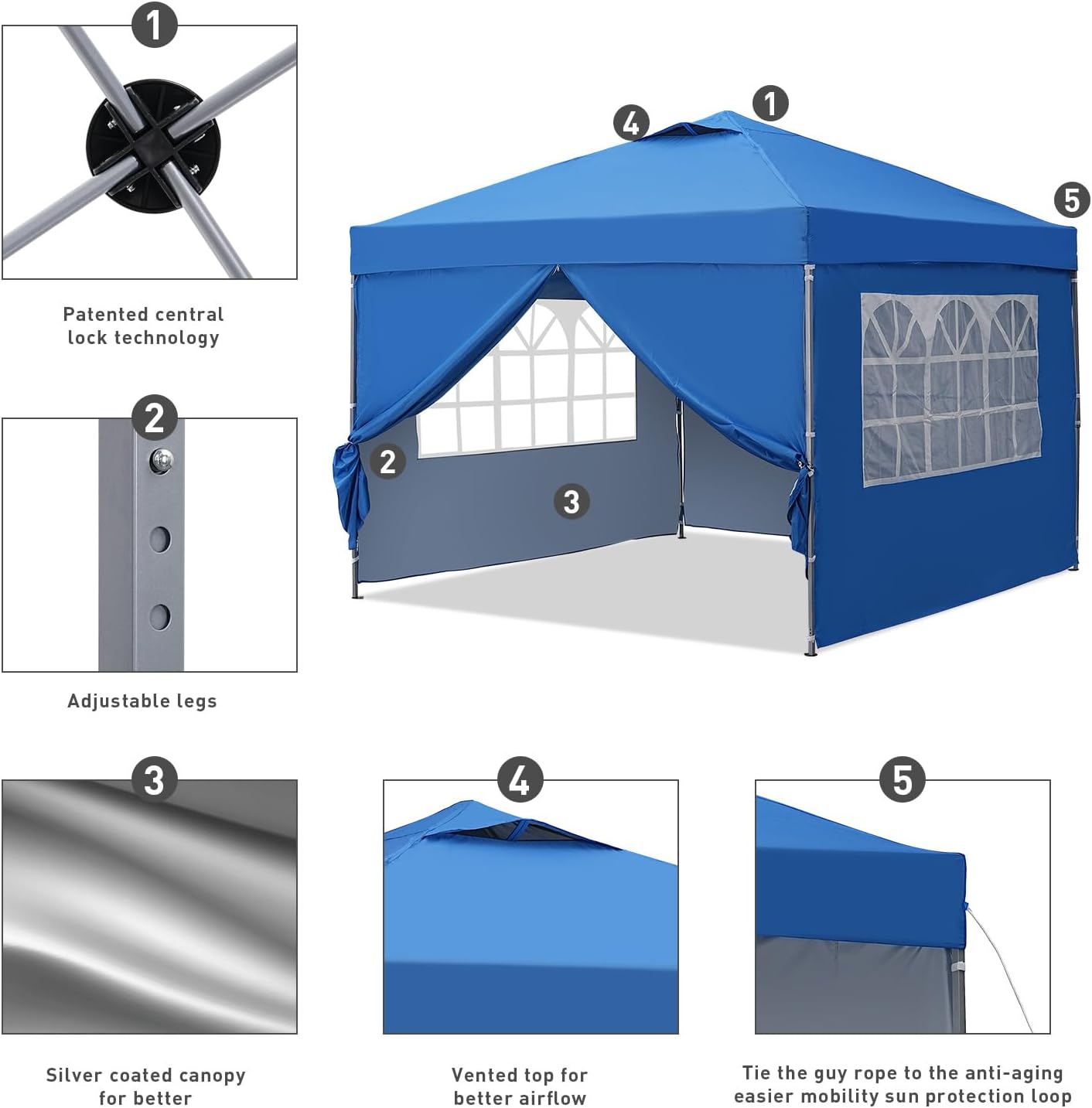 | Coverage | Water-resistant and UV-blocking canopy with detachable sidewalls. providing 100 square feet of coverage |