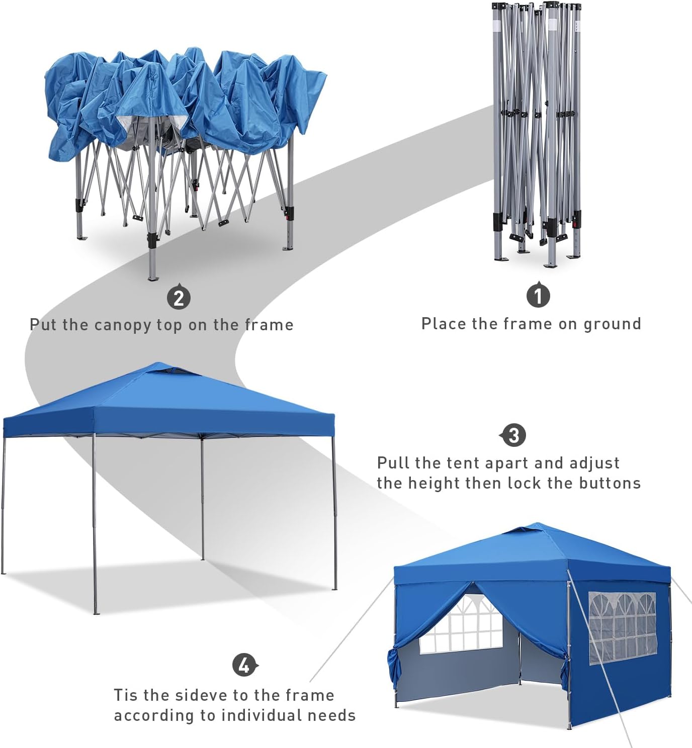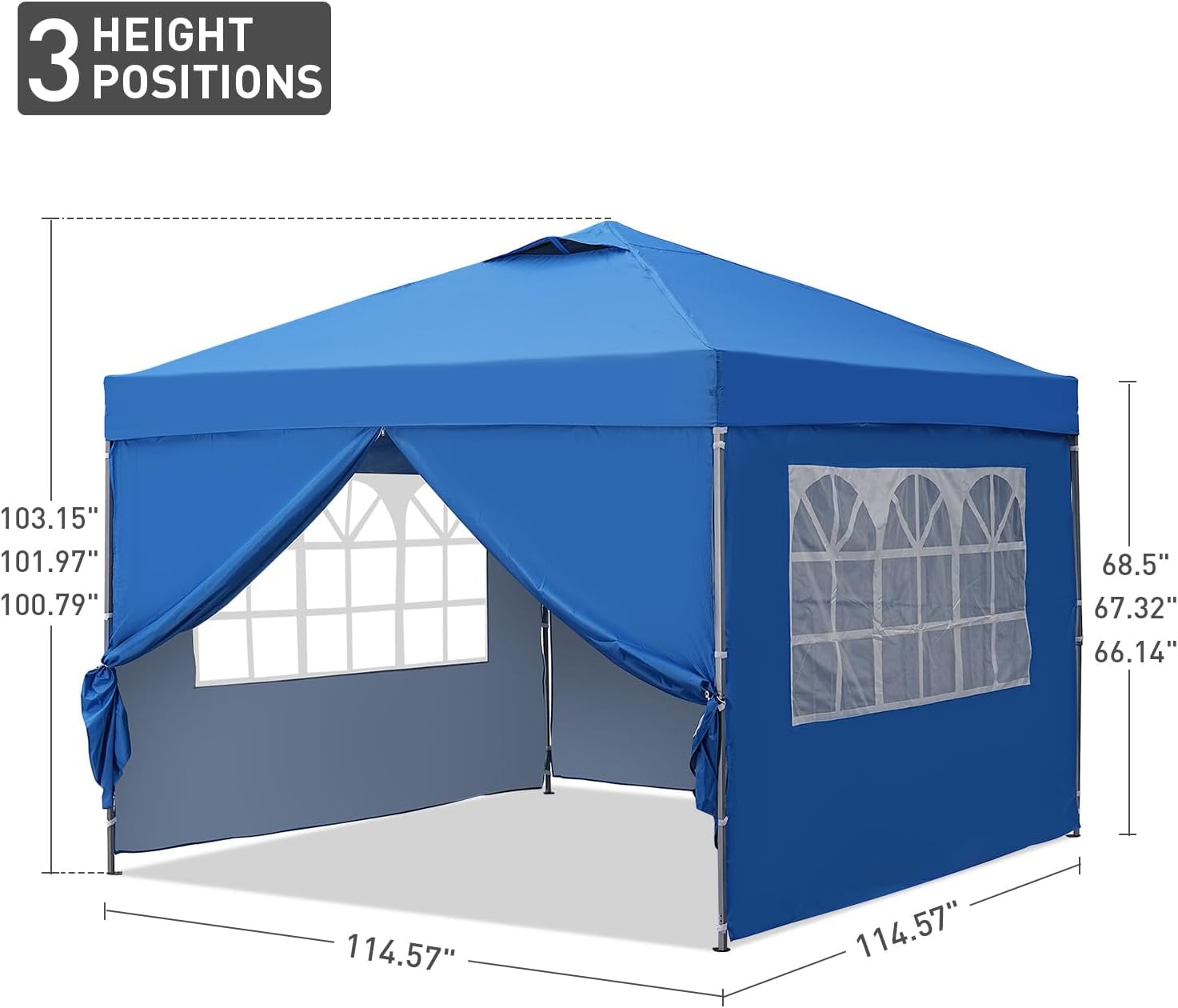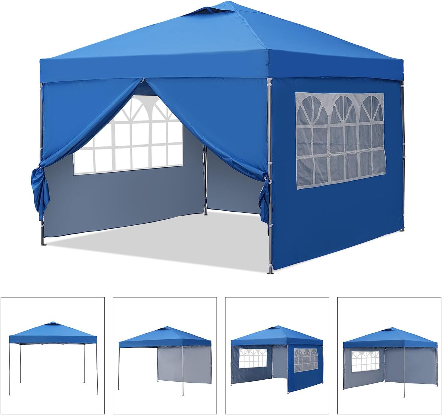• GDY 10x10 Pop Up Canopy Tent, Outdoor Canopy Tent, Patio Tent,Commercial Instant Gazebos,4 Sidewalls, Portable Shelter Canopies, with 4 sandbags, Blue.