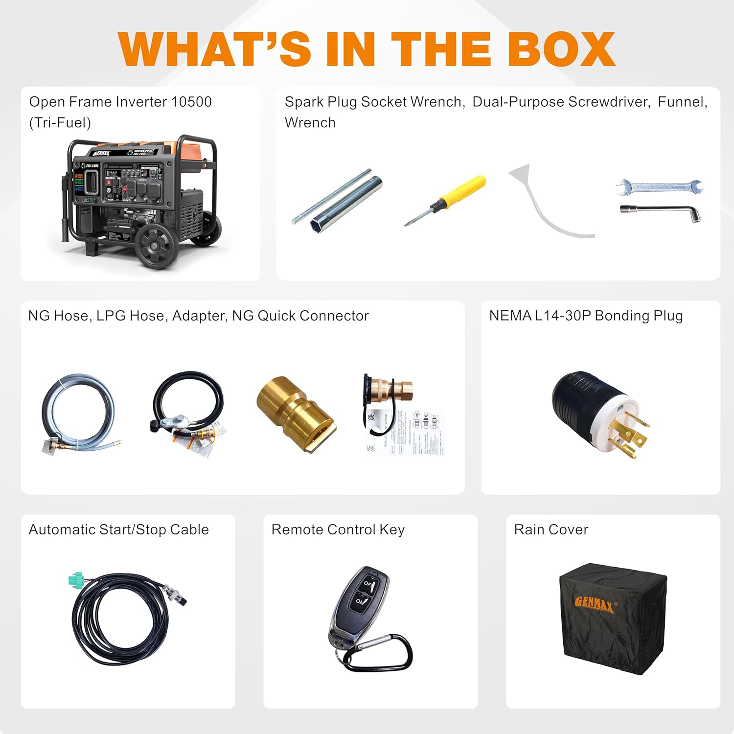 - 【Multi-Fuel Capability. Effortless Start-Up】: Designed to accommodate different environments and user preferences. the GM10500XiT supports flexible switching between gasoline.LPG. and natural gas. Additionally. it features convenient start-up options including one-button start. remote start. and recoil-start. ensuring quick power supply initiation under any conditions. Simplified operation allows users to take control effortlessly.