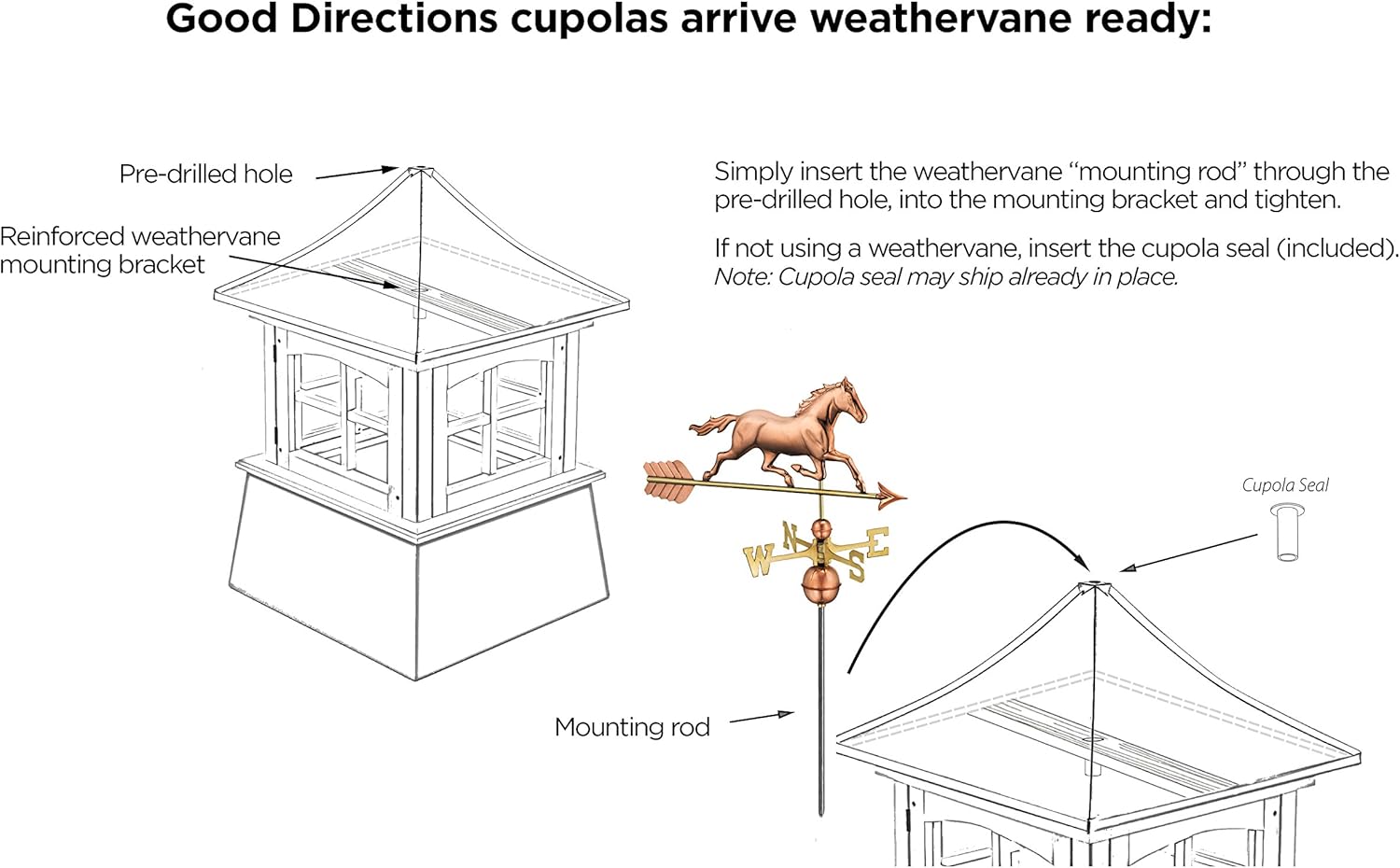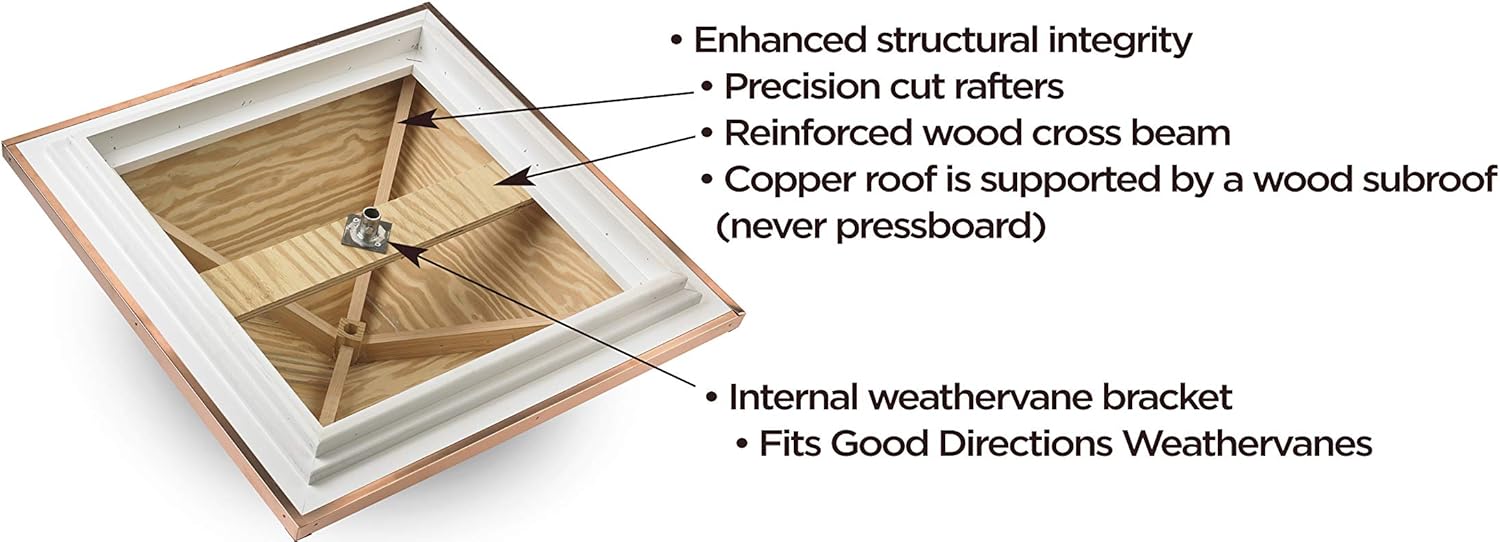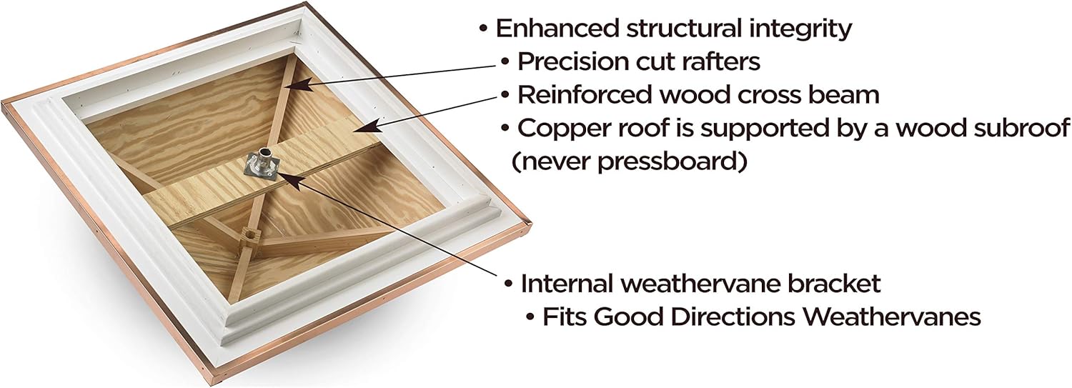 - WEATHERVANE READY �� Cupola is ready to accept a Good Directions weathervane. Includes pre��installed weathervane bracket inside the roof for easy installation.