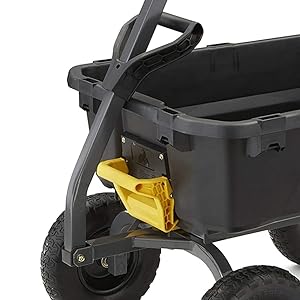 - QUICK-RELEASE DUMPING: Our patented quick-release dumping system allows you to unload with ease while the tight-turning steering makes it easy to maneuver over different terrain