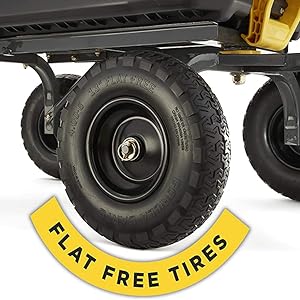 - FLAT-FREE TIRES: 13-inch maintenance-free tires engineered to withstand tough terrain without ever going flat