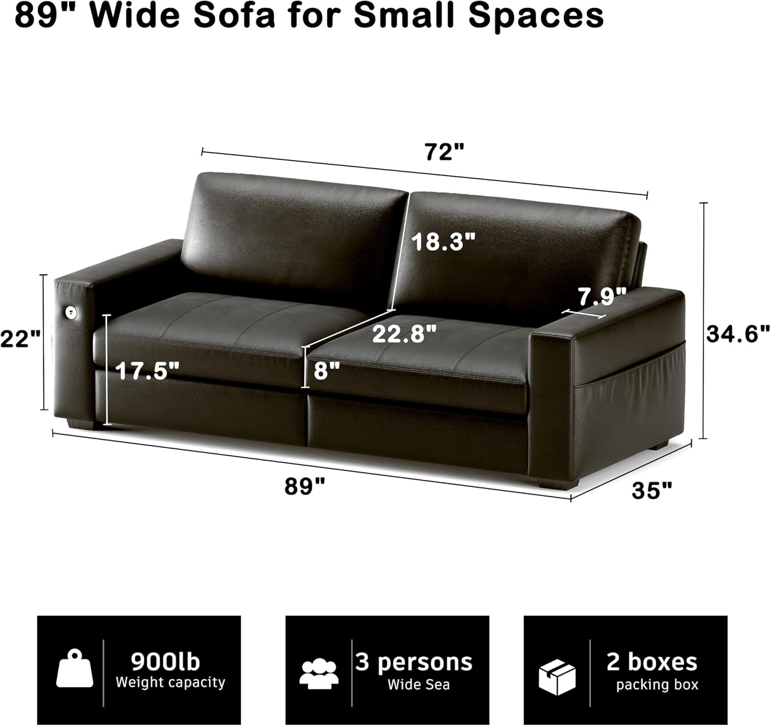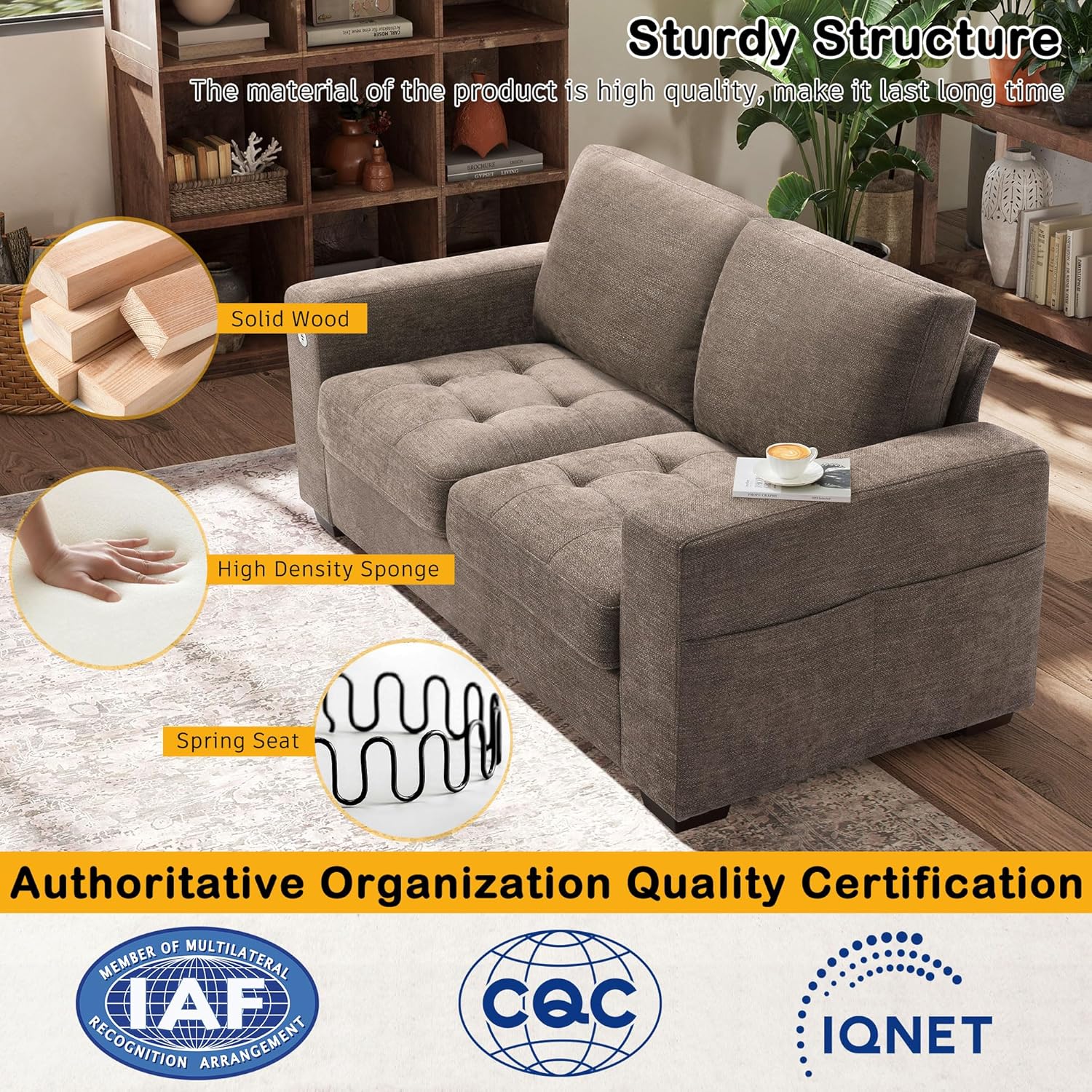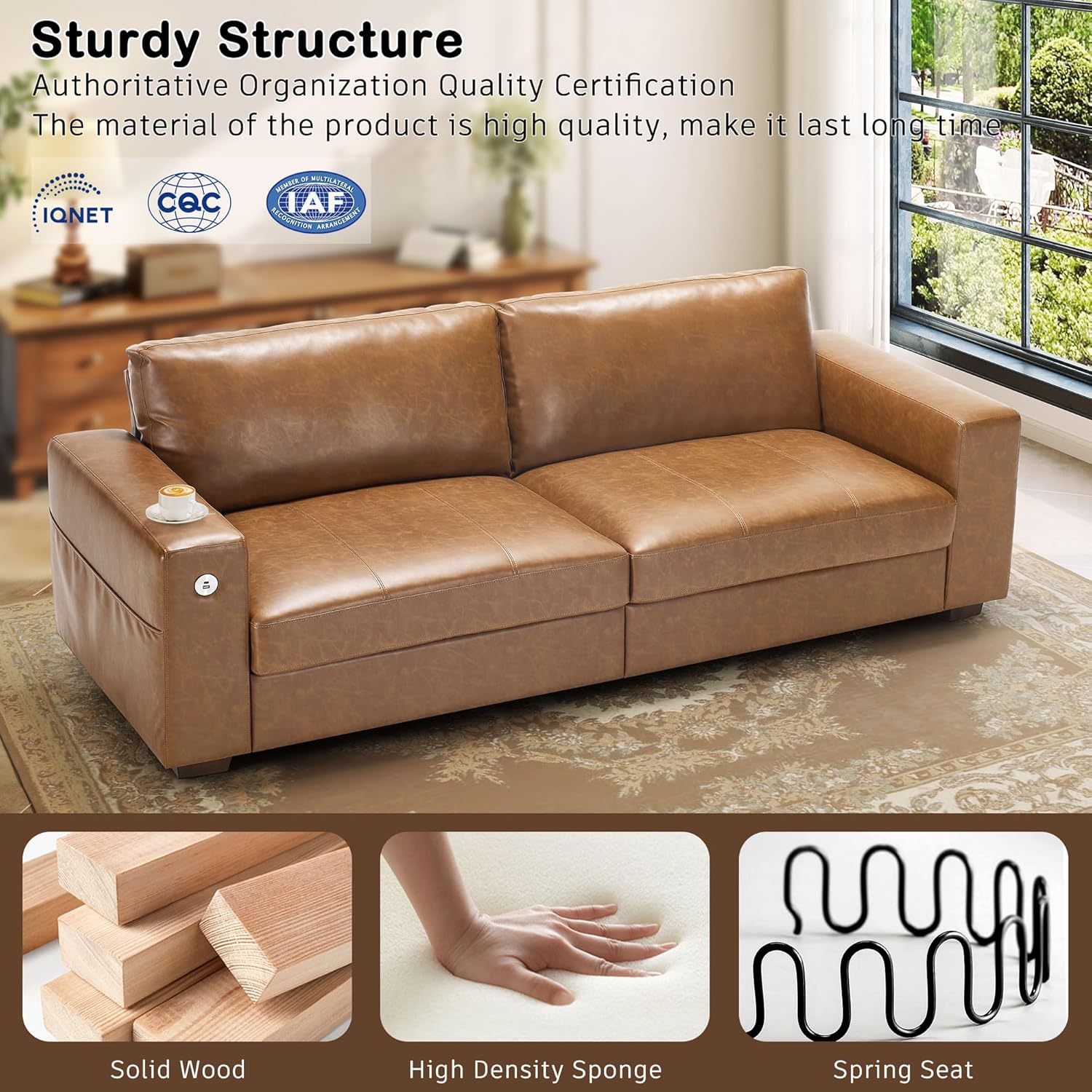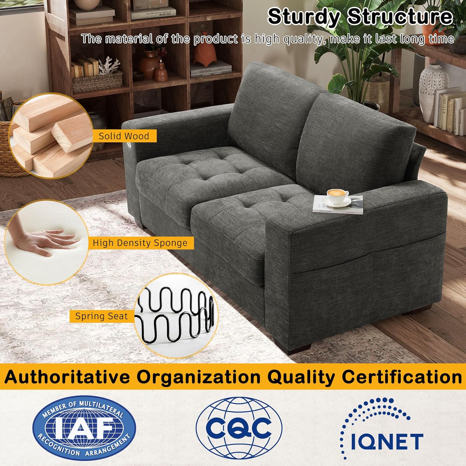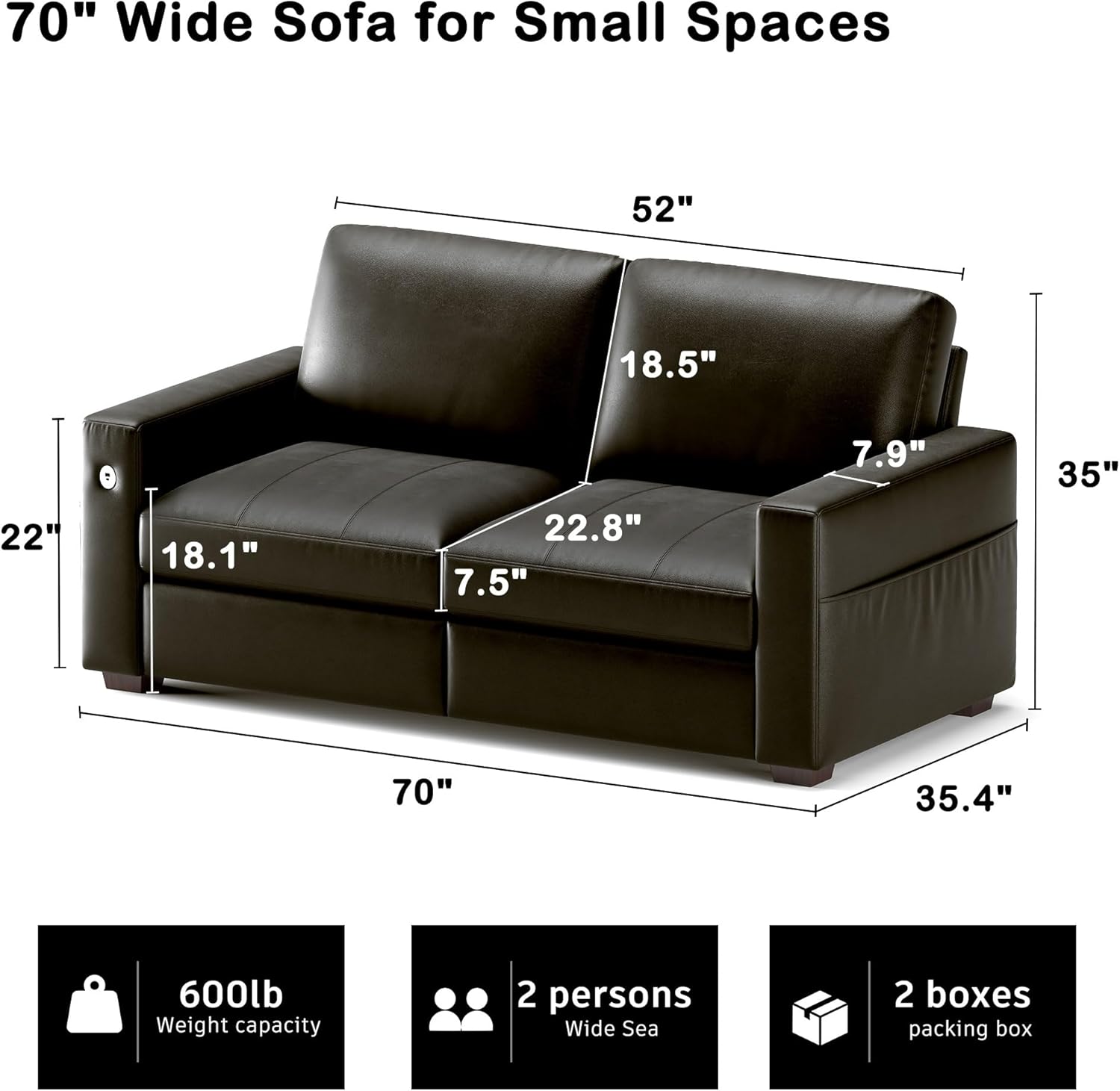 • ��Multi-Functional Couch & Quality Certified ��This couch comes with USB and Type-C ports. so you can easily charge your phone or iPad while you relax. Plus. there are four side pockets to keep your magazines or books close at hand. Our small space sofa is certified for quality by trusted institutions. and the 7.9-inch solid wood armrests along with thick wooden legs provide strong support. holding up to 900 lbs!