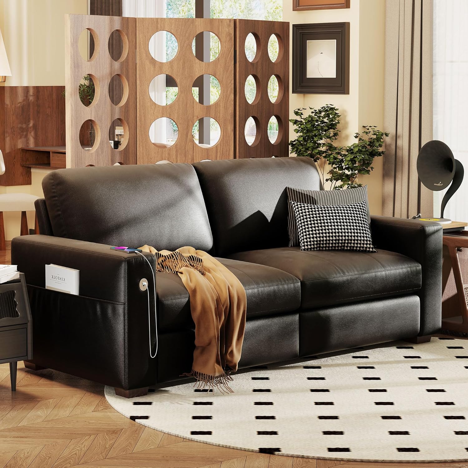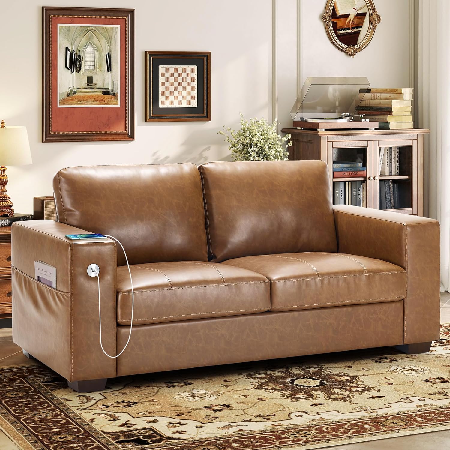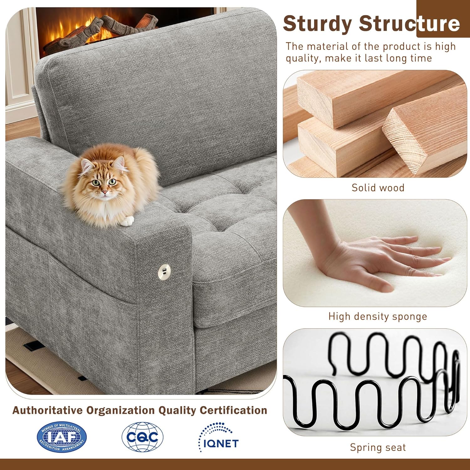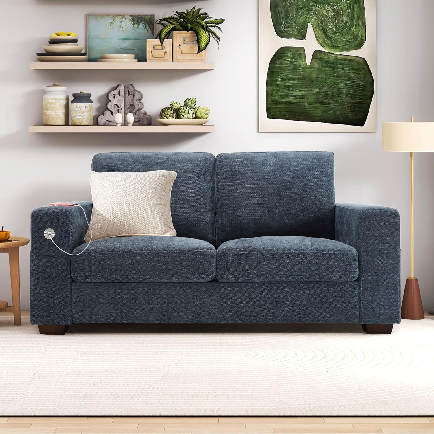 • ��Multi-Functional Couch & Quality Certified ��This couch comes with USB and Type-C ports. so you can easily charge your phone or iPad while you relax. Plus. there are four side pockets to keep your magazines or books close at hand. Our small space sofa is certified for quality by trusted institutions. and the 7.9-inch solid wood armrests along with thick wooden legs provide strong support. holding up to 900 lbs!