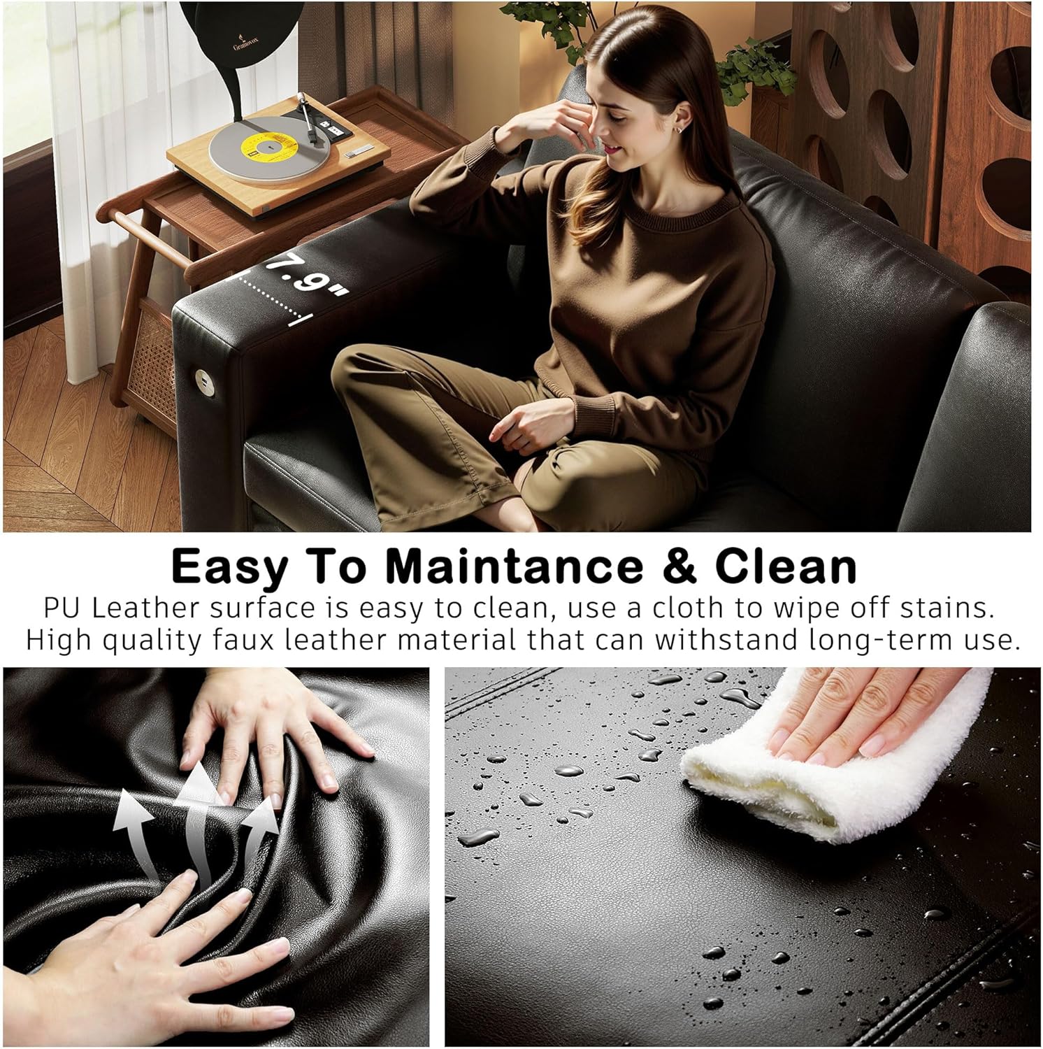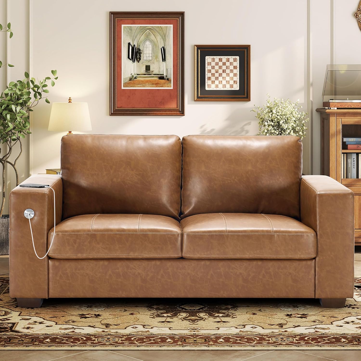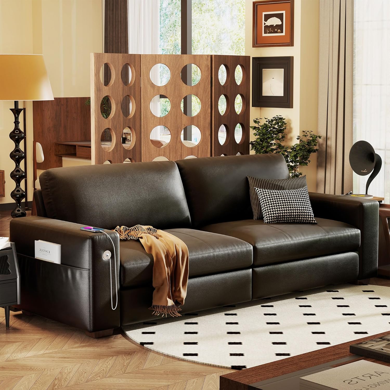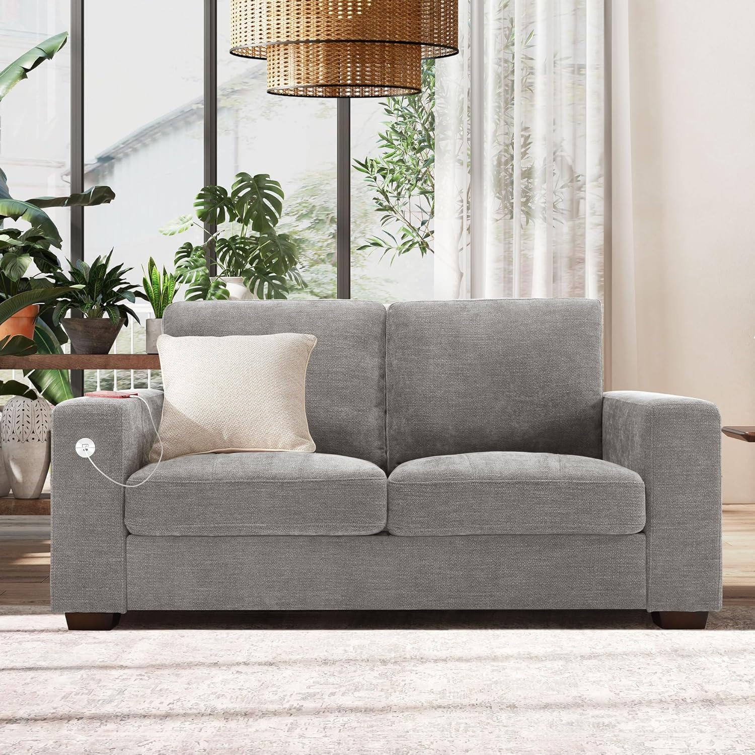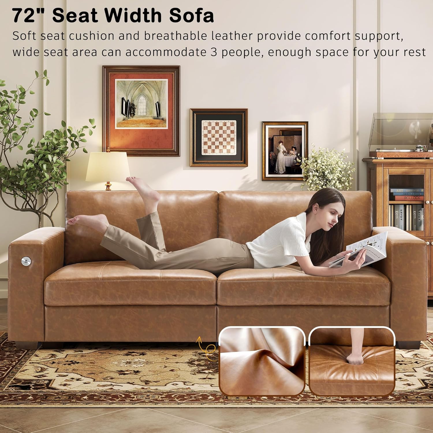 • ��Multi-Functional Couch & Quality Certified ��This couch comes with USB and Type-C ports. so you can easily charge your phone or iPad while you relax. Plus. there are four side pockets to keep your magazines or books close at hand. Our small space sofa is certified for quality by trusted institutions. and the 7.9-inch solid wood armrests along with thick wooden legs provide strong support. holding up to 900 lbs!