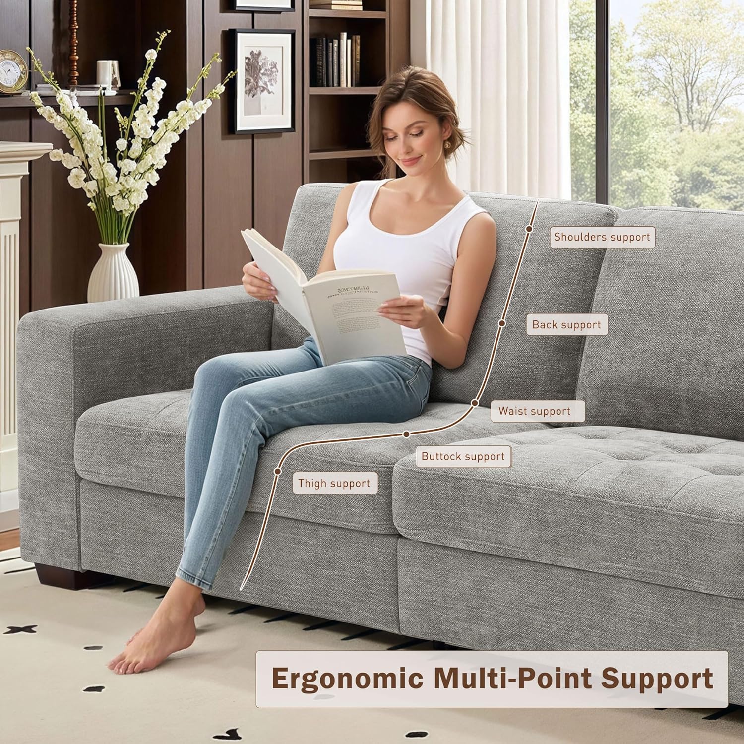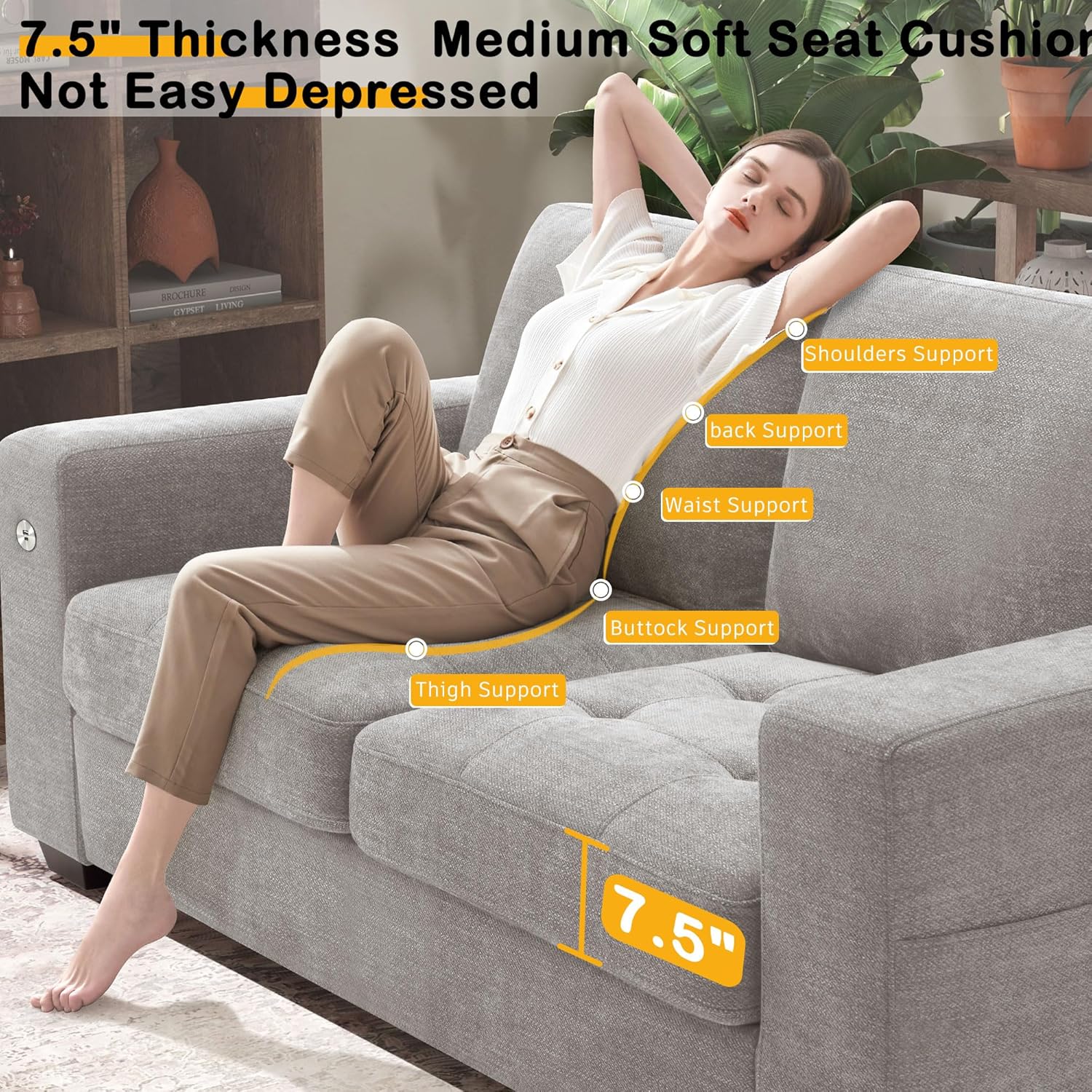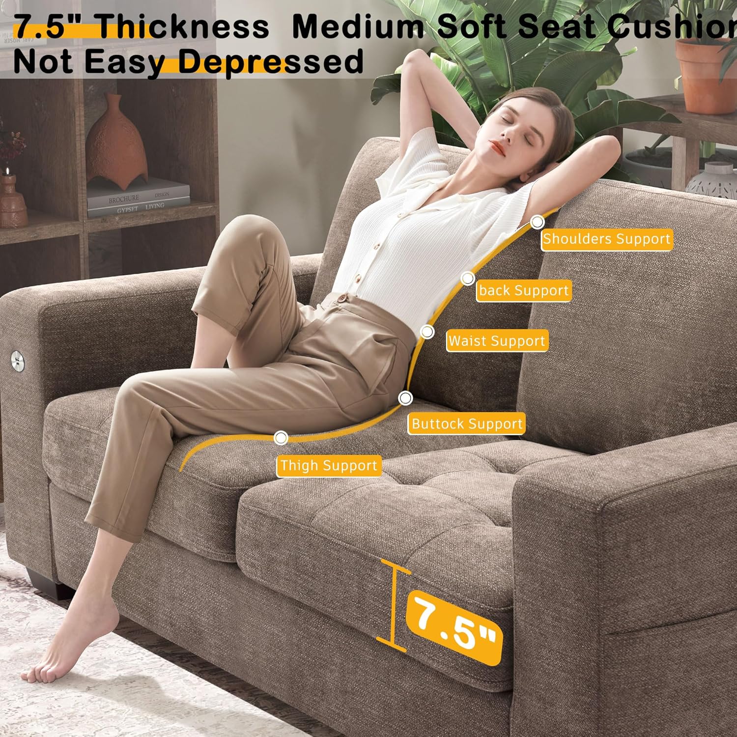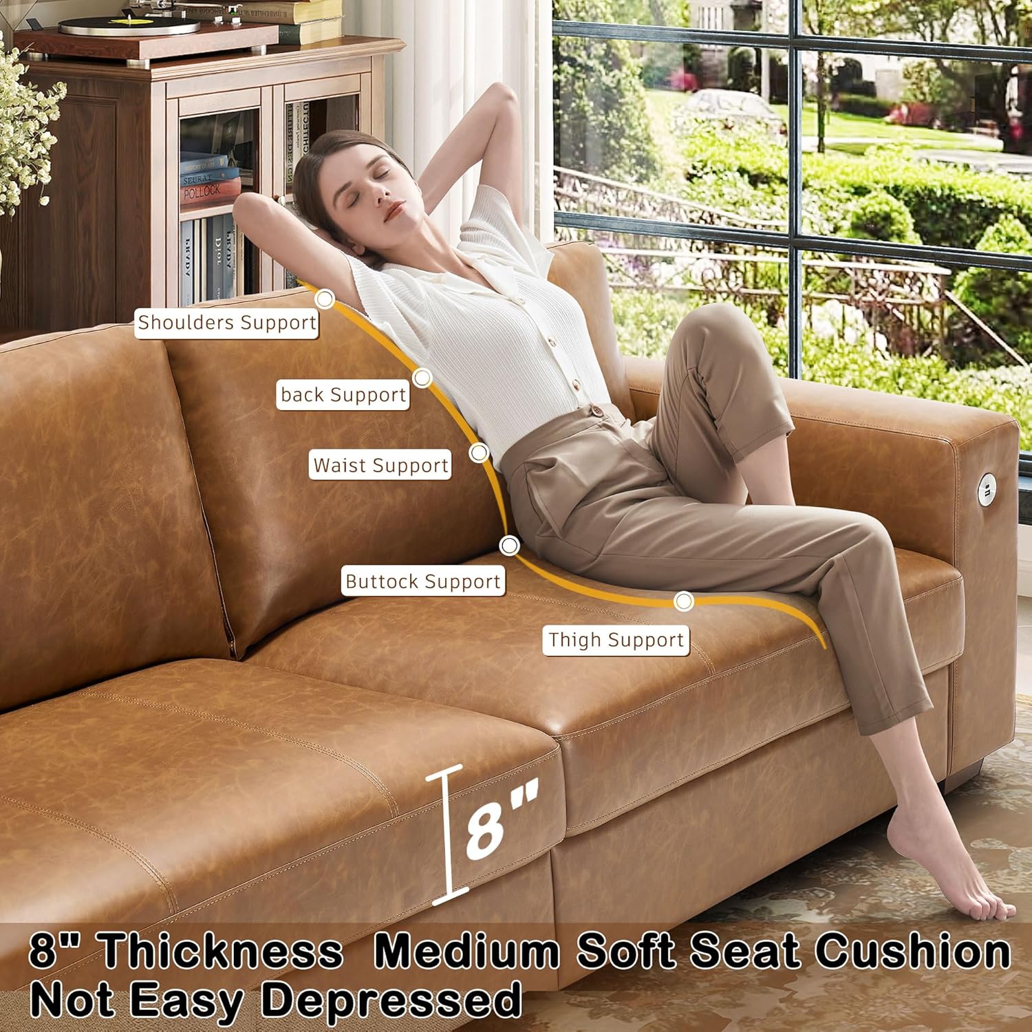 • ��Thick Seat Cushion & High-Resilience Sponge��Our sofa for living romm has a 8 inch medium-firm seat cushion made of high-resilience sponge. so it won't get depressed even after long use. The fluffy back cushion gives you soft support for extra comfort.