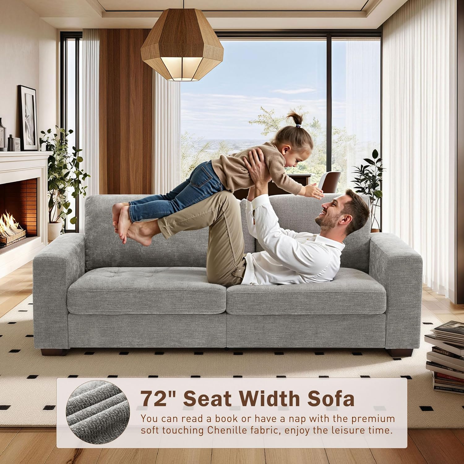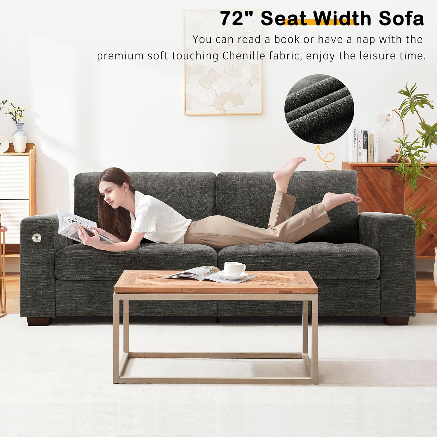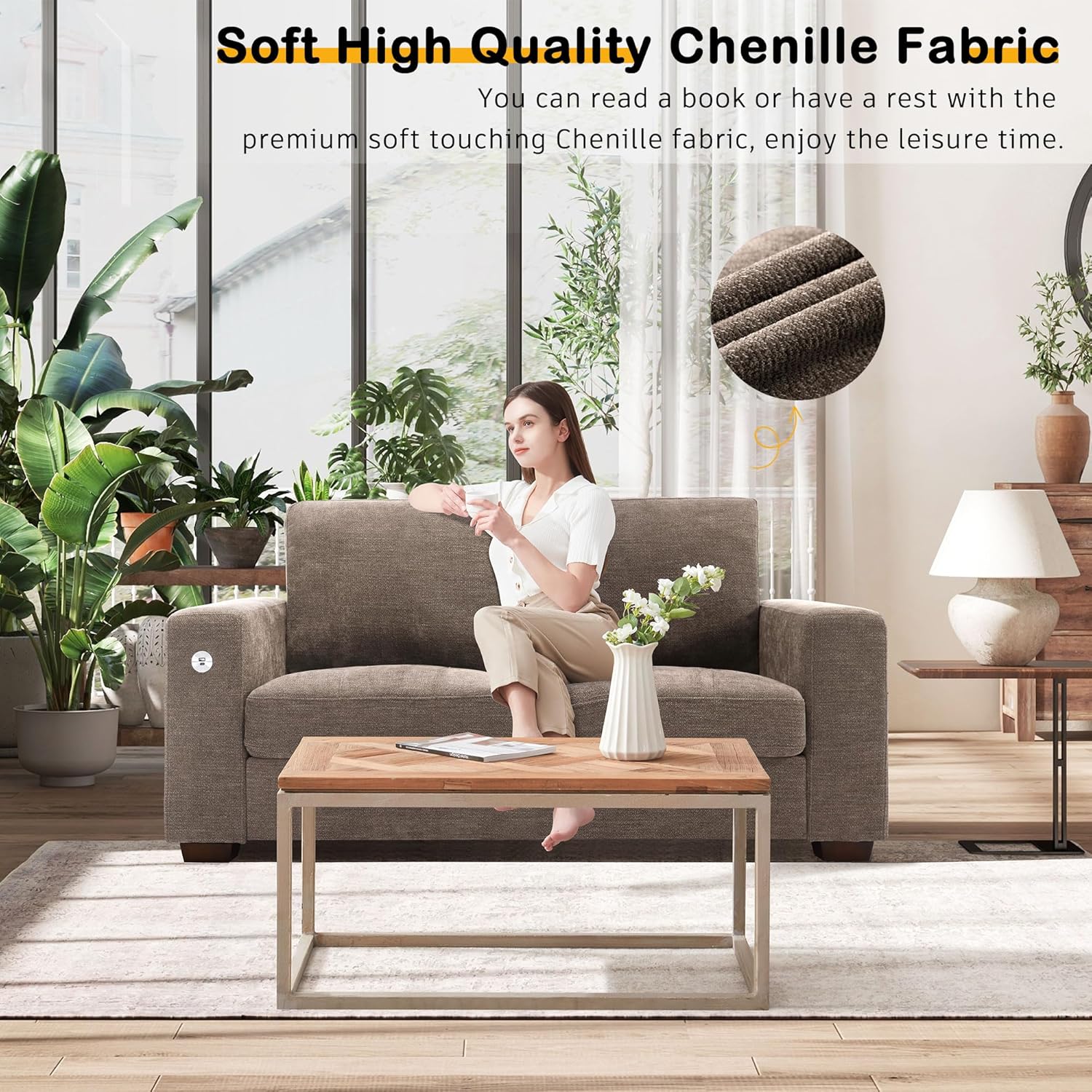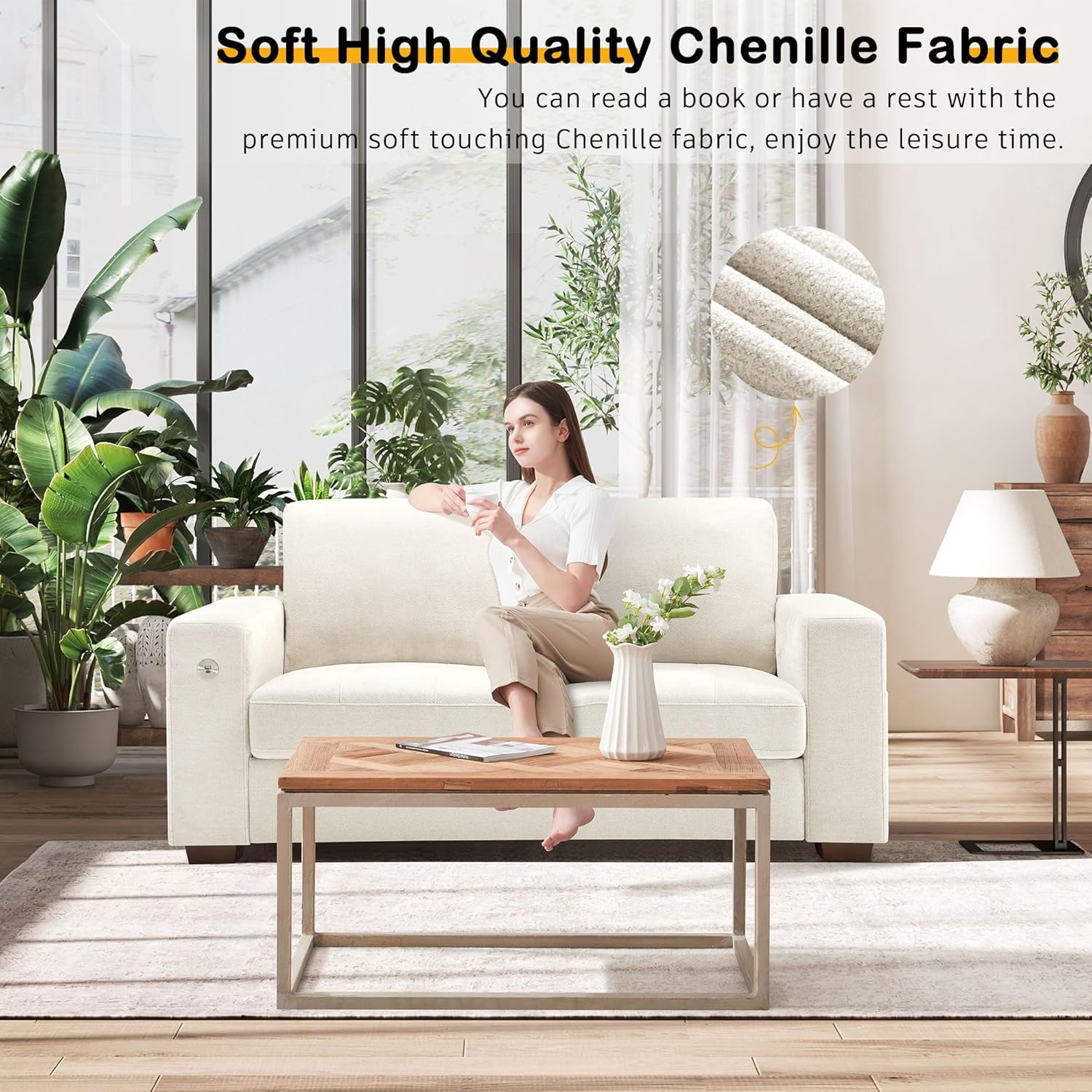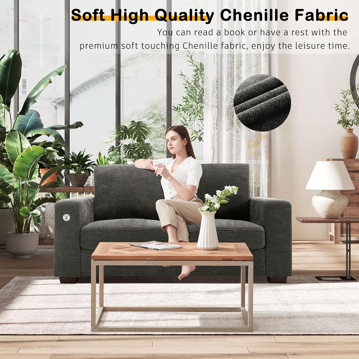 • ��Soft Touching Chenille Fabric & Detachable Cushion Cover��Our comfy sofa is covered with premium chenille fabric. which is breathable and wear-resistant. Each back and seat cushion has a zipper for you to take them off easily and wash.