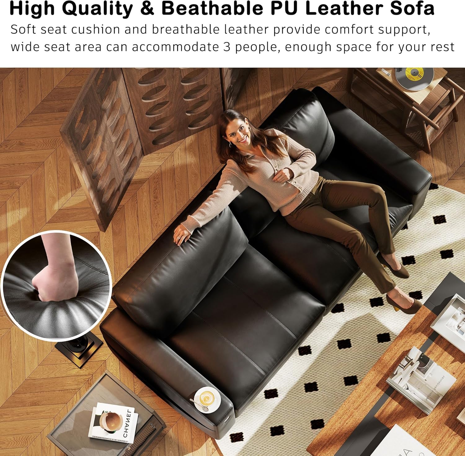 • ��72 Inch Seat Width For 3 Persons��Hanherry 3 seater couch features a sturdy frame and offers a generous 72-inch seat width. This spacious space design caters to daily recreational needs. allowing you to relax or take a nap with ease. Ideal for small spaces. this couch is perfect for apartments. dormitories. and medium or small living rooms.small space.