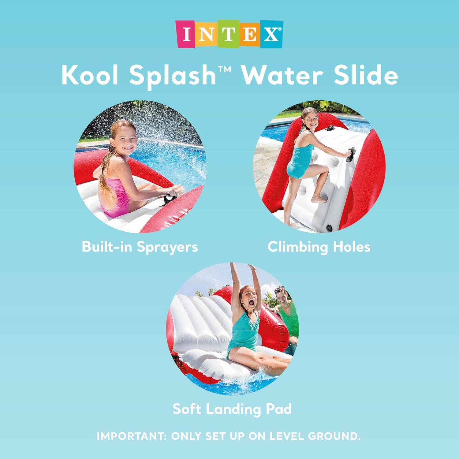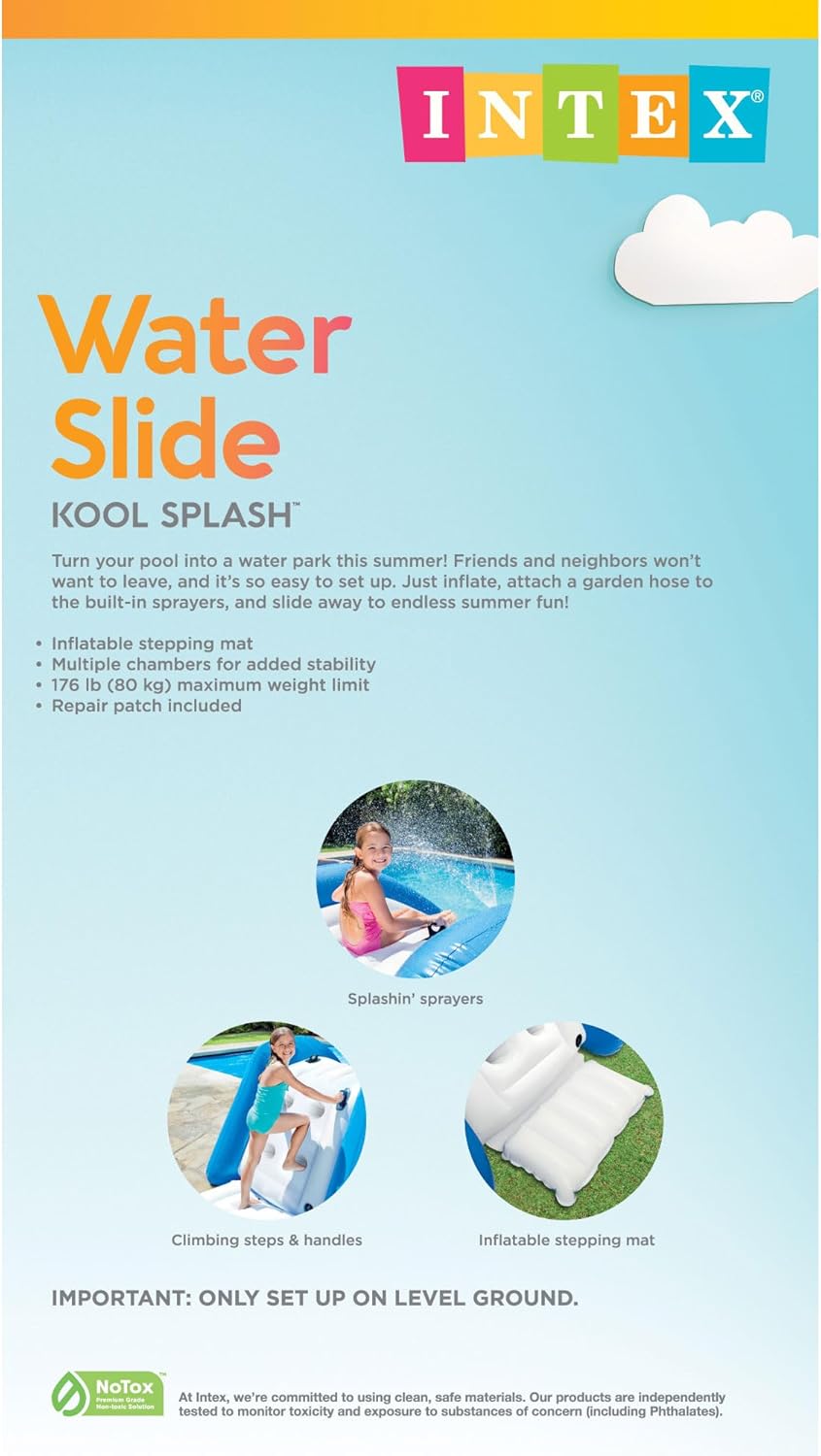 • Intex Kool Splash Inflatable Water Slide Swimming Pool Play Center with Built in Sprayers for Kids and Adults, Ages 6 and Up, Blue