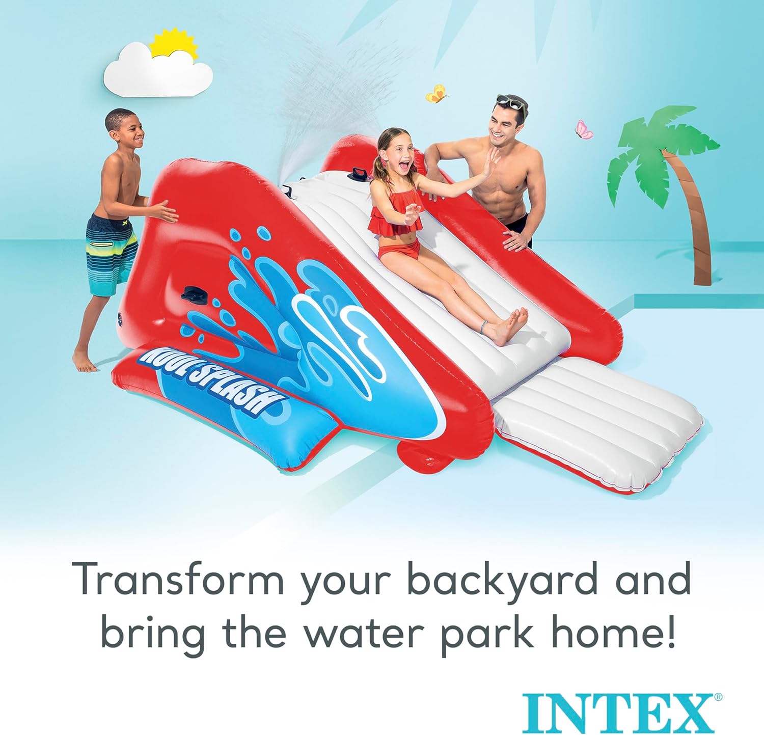 • Sliding Fun: Inflatable swimming pool waterslide introduces a new. fun way to make a splash in your pool or at the lake. suitable for ages 6 and up