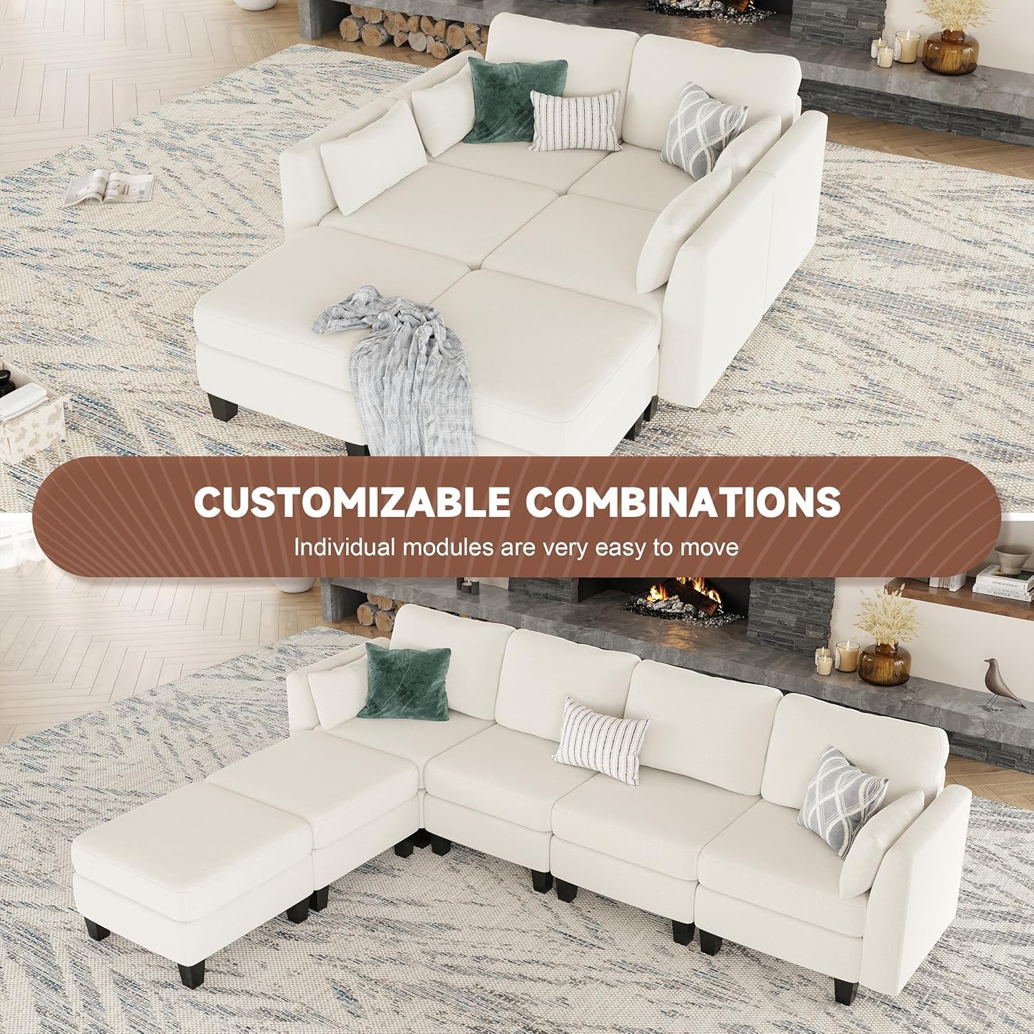 • Flexible Modular Couch: The Huatean Home modular sectional sofa features a modern design that allows for easy switching and flexible adjustments. It can be configured into an L-shaped sofa. U-shaped sofa. sofa bed. and other stylish combinations