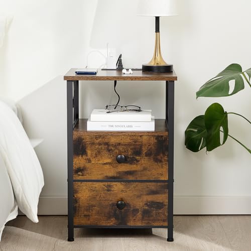 - Best Storage Option: Say no more. This nightstands set of 2 includes a middle storage shelf that can house your magazines. boxes and general living room knick-knacks. Plus. it features two fabric drawers for private stuffs