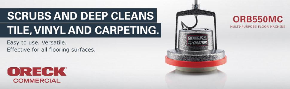 Conventional floor scrubbers can be difficult to use. Oreck Commercial ORB550MC Orbiter Hard Floor Cleaner works differently; the brush head rotates in a random orbit for easy-to-use fingertip control. With several cleaning pads. brushes and cleaning solutions for purchase. it's versatile enough to tackle virtually any job on any floor surface and gives you amazing. professional-looking results every time.